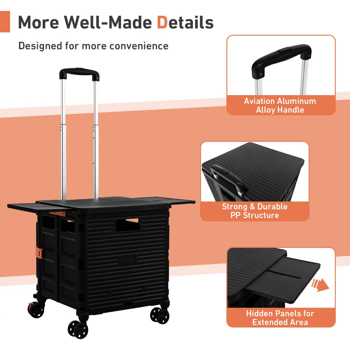 This folding utility cart will bring much convenience to you in every aspect of your daily life. Constructed of high-grade PP material and heavy-duty aluminium alloy, the rolling handcart can withstand the test of time. The telescoping handle features 3...View More