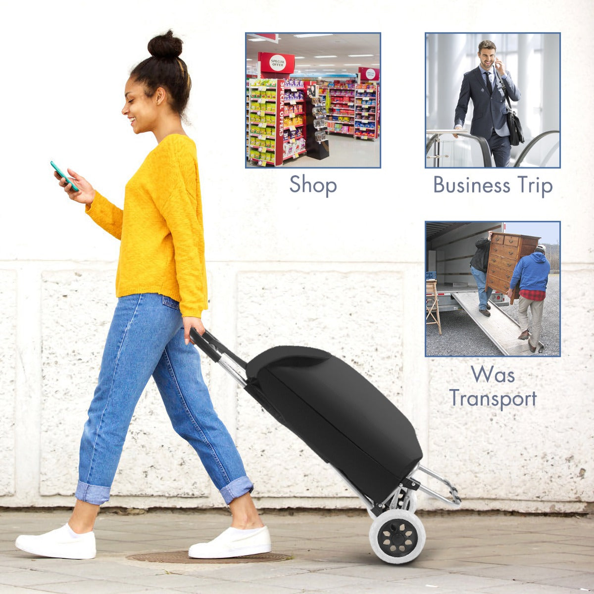 Aussies Market Shopping Trolley Cart with 2 Rubber Tires