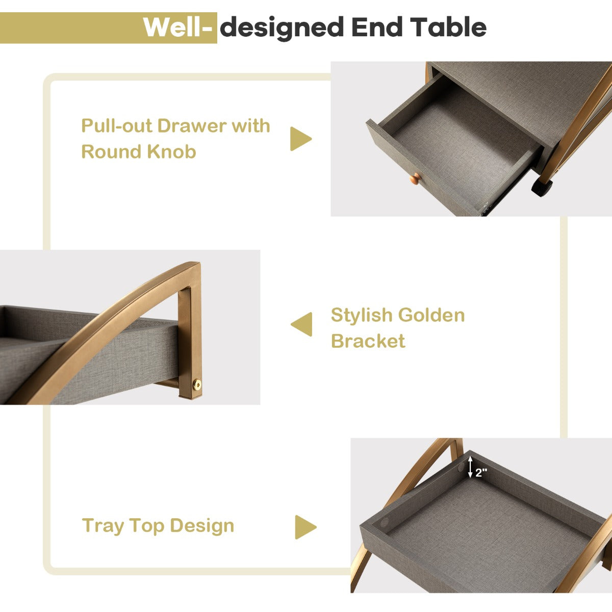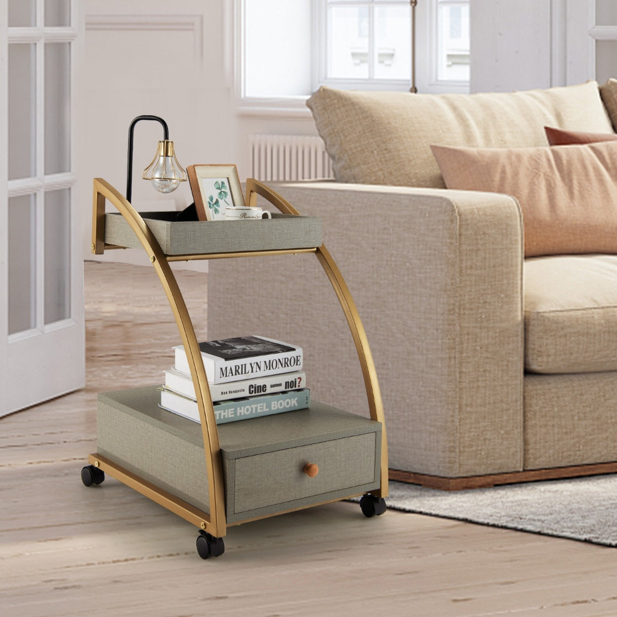 Elegant Design for Decoration: After a simple assembly, you will soon get an elegant rolling sofa side table. Painted in grey and gold, the side table looks very luxurious but minimalist. The curved steel frame makes the overall silhouette look softer. Undoubtedly, the rolling end table will decorate your home well.