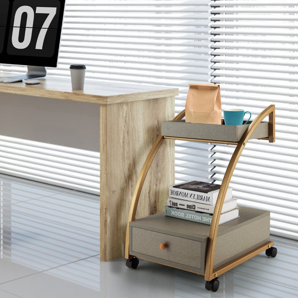2 Tier C-Shaped Structure for Storage: Combining with a square tray and a bottom drawer, the compact rolling end table (40cm x 50cm x 65.5cm) presents a space-saving shape similar to C. Meanwhile, the top tray and lower pull-out drawer provide great storage space for snacks, decorations, magazines and more.