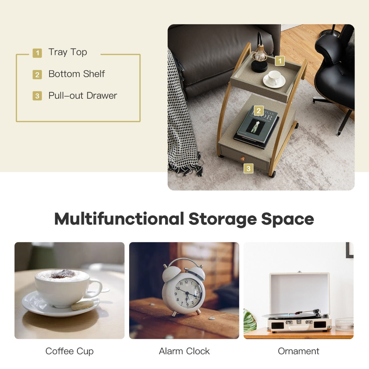 Detachable top tray allows you to use the end table as a food tray or a nightstand