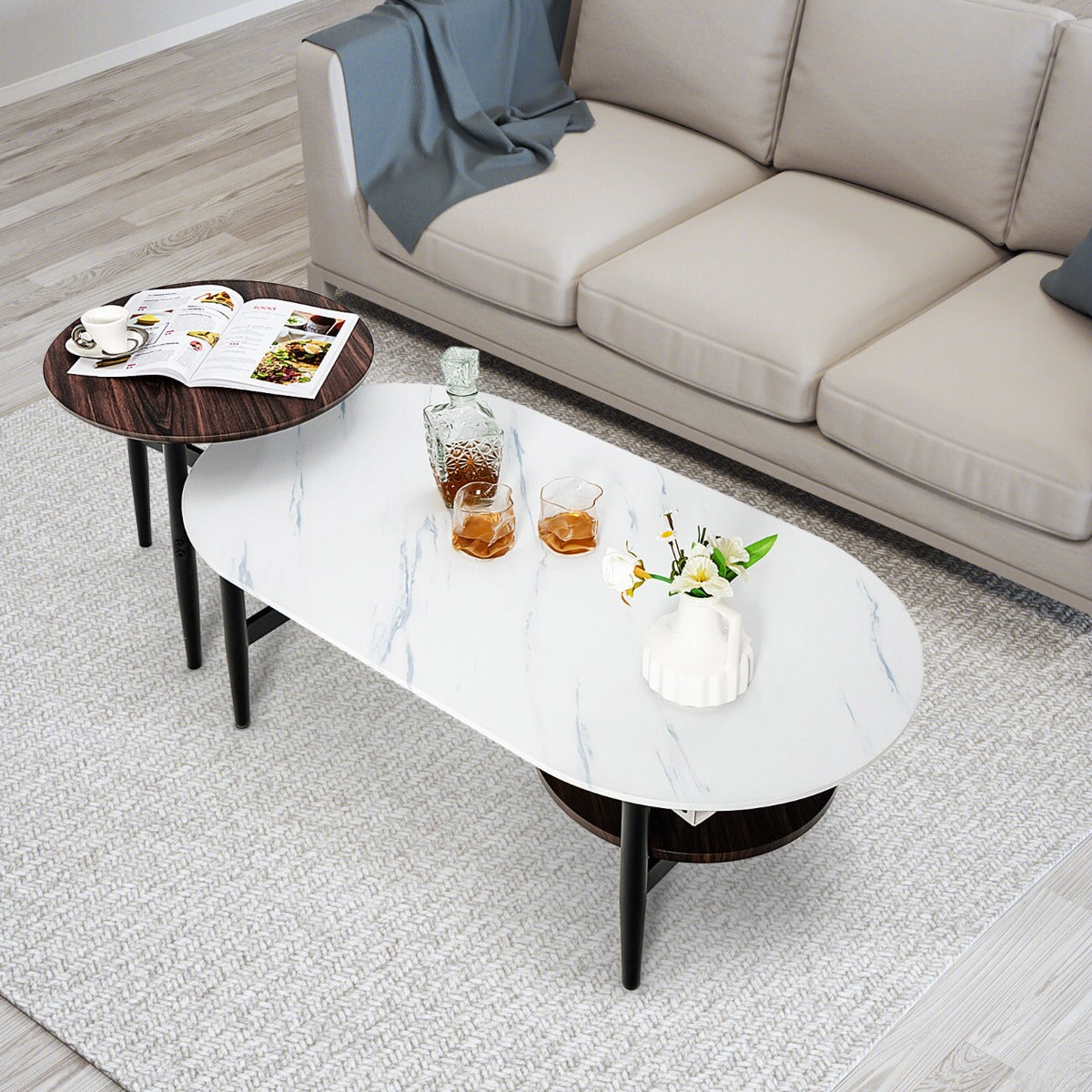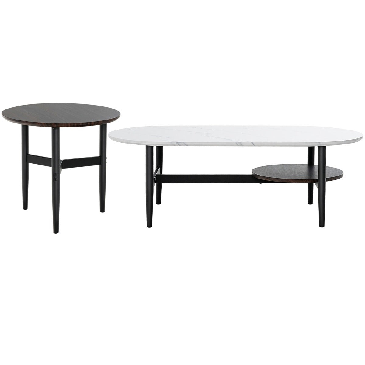 Aussies Market 2 PCS Modern Table Set with Extra Storage Shelf for Living Room