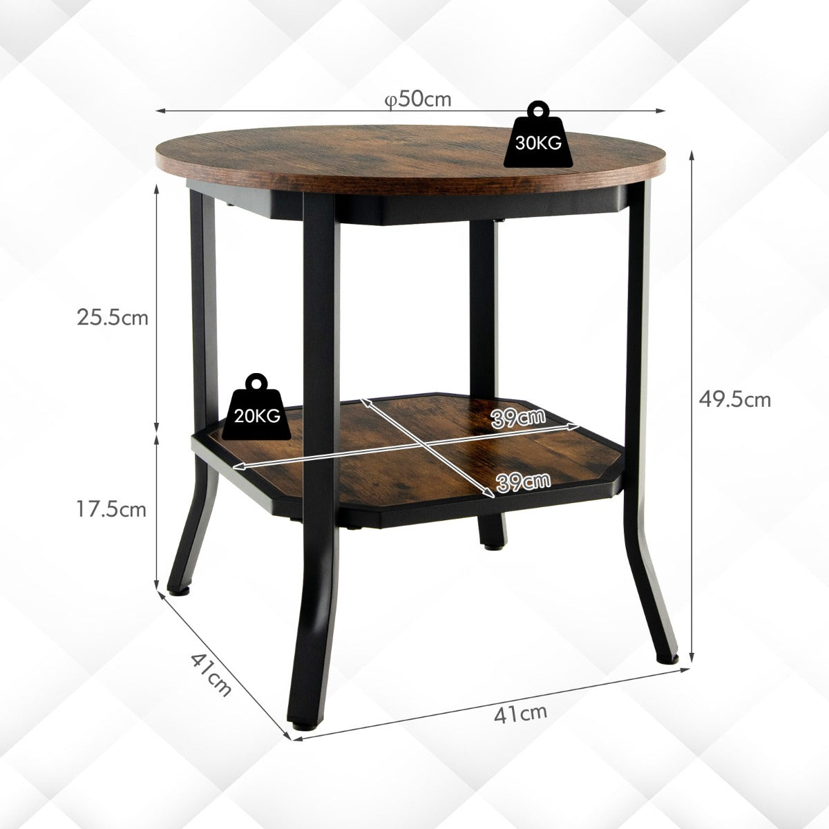 Sturdy and Stable : Made of premium engineered wood and metal frame, this end table is sturdy and wear-resistant for years of use. It has strong bearing capacity, the desktop can bear 30kg, and the laminate can bear 20kg. Besides, powder spraying paint surface makes it antirust and durable.