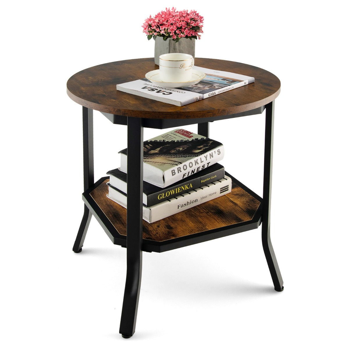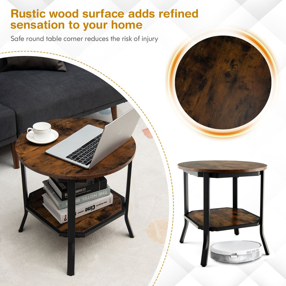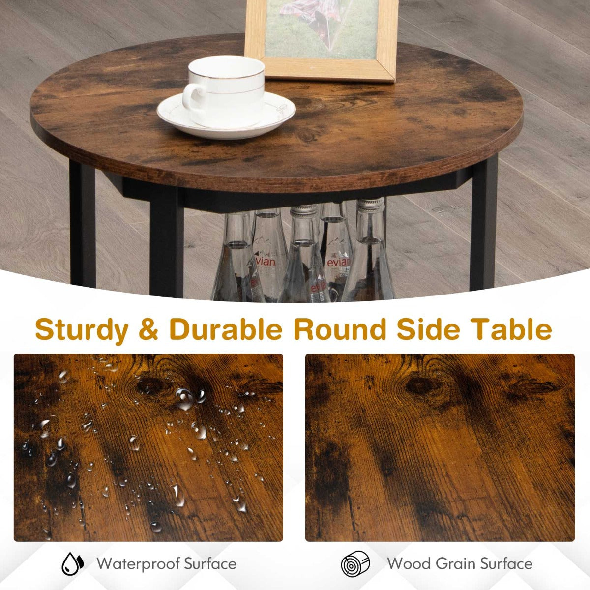 Keep Clutter-Free: The round tabletop is large enough to display your photo frame, tea cup, plant, etc. The double-layer structure of upper and lower shelves provides more space for storage. Whether in the living room, office, study or coffee shop, it can effectively keep your space clean and tidy.