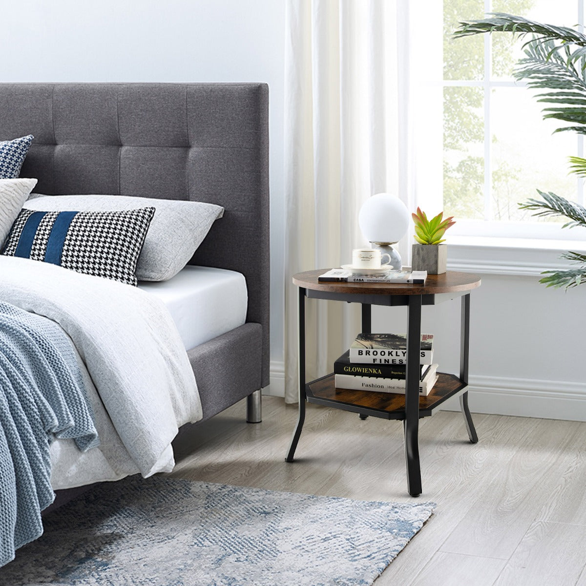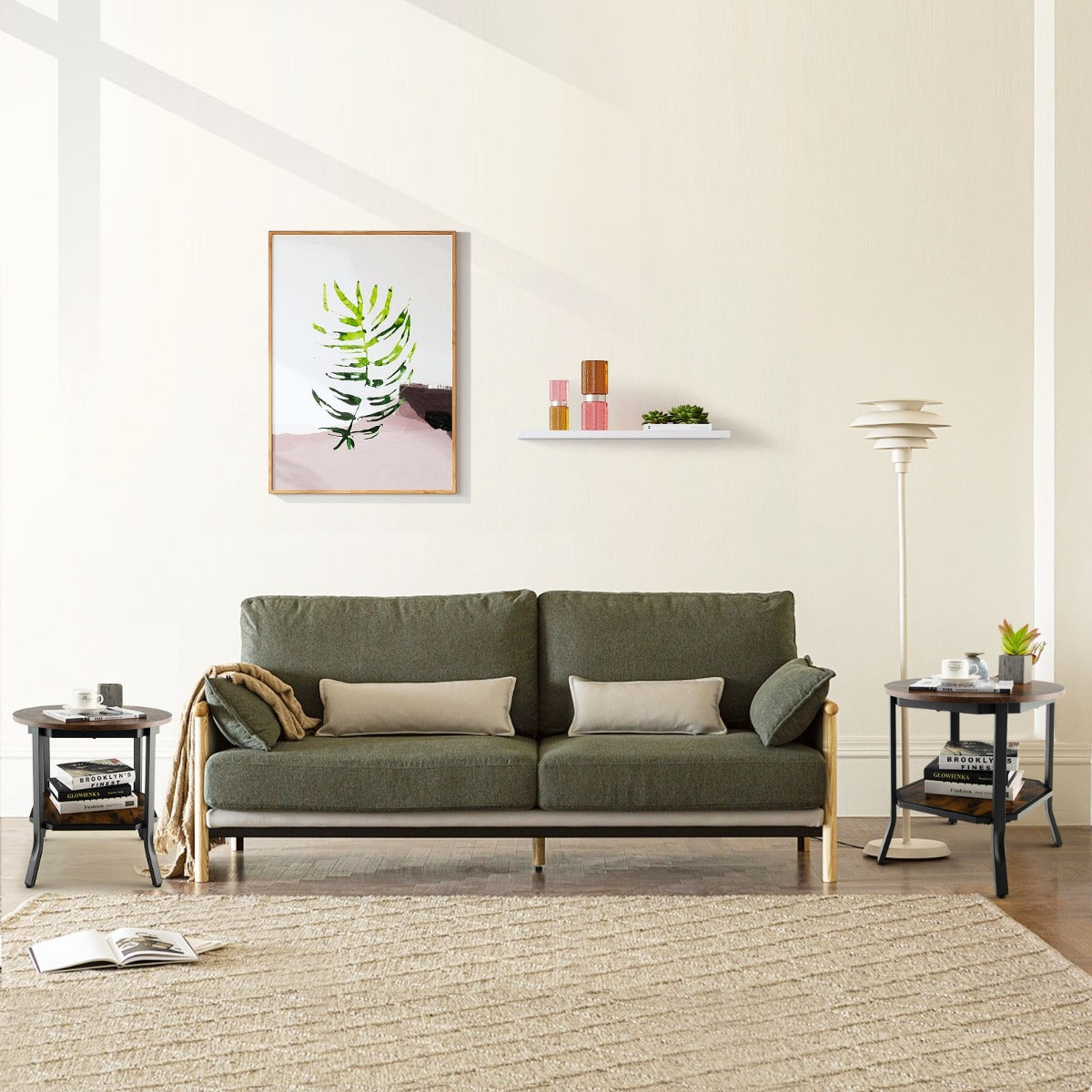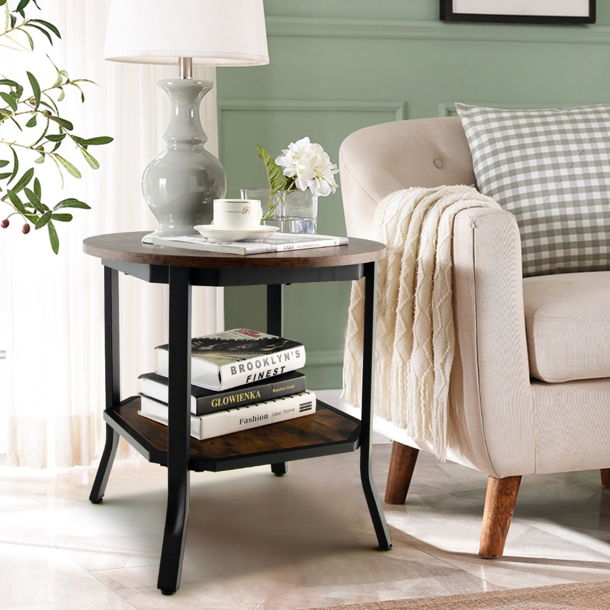 Keep Clutter-Free: The round tabletop is large enough to display your photo frame, tea cup, plant, etc. The double-layer structure of upper and lower shelves provides more space for storage. Whether in the living room, office, study or coffee shop, it can effectively keep your space clean and tidy.