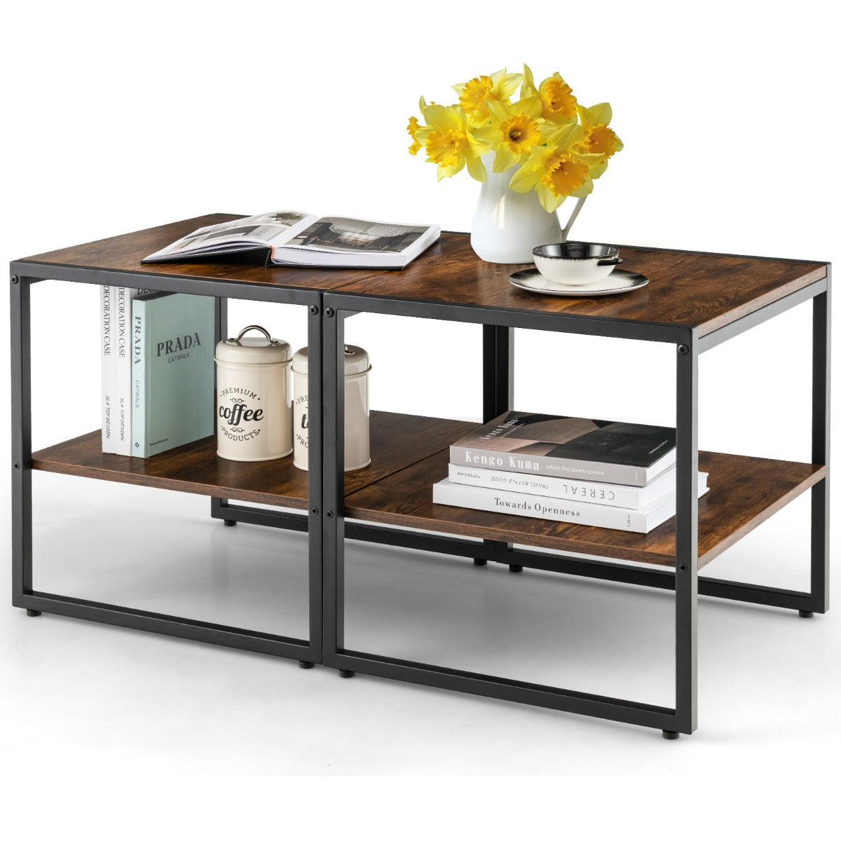 Free Combination: The 2pcs square side tables can be freely combined for different purposes. For example, they can be used together to make up a long rectangular coffee table. Together with the beautiful rustic brown boards with natural wood grain, the multifunctional set can blend into different decorations.