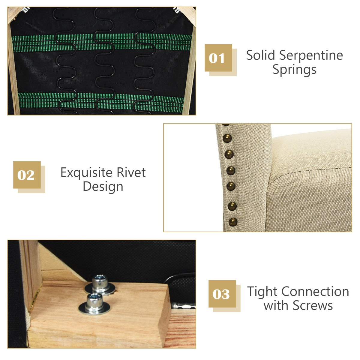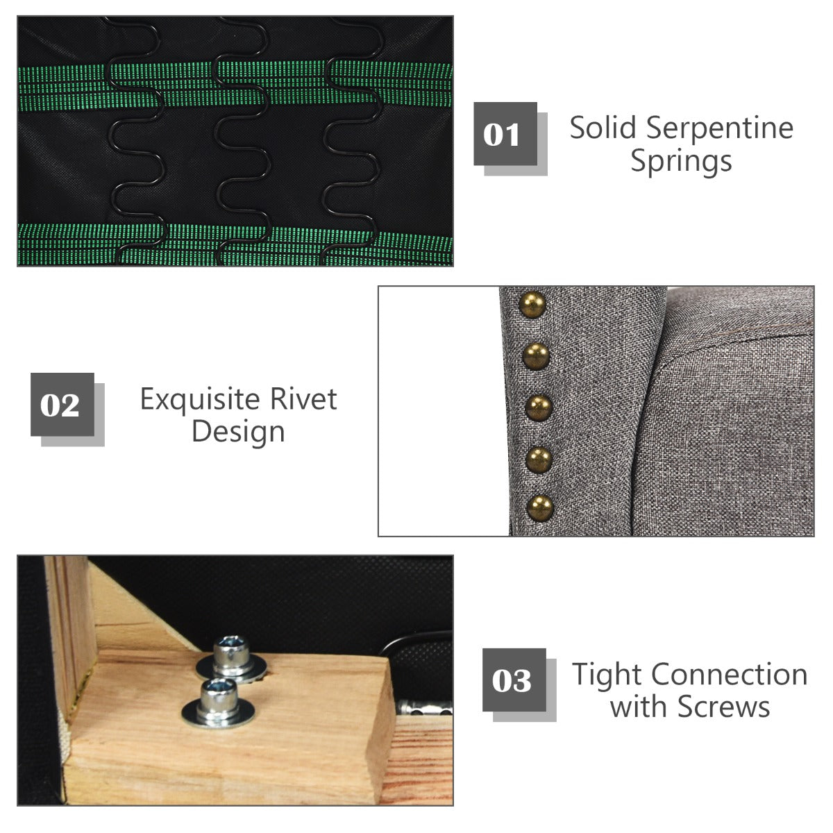 Stylish rivet design and tufted back to add beauty and elegance
