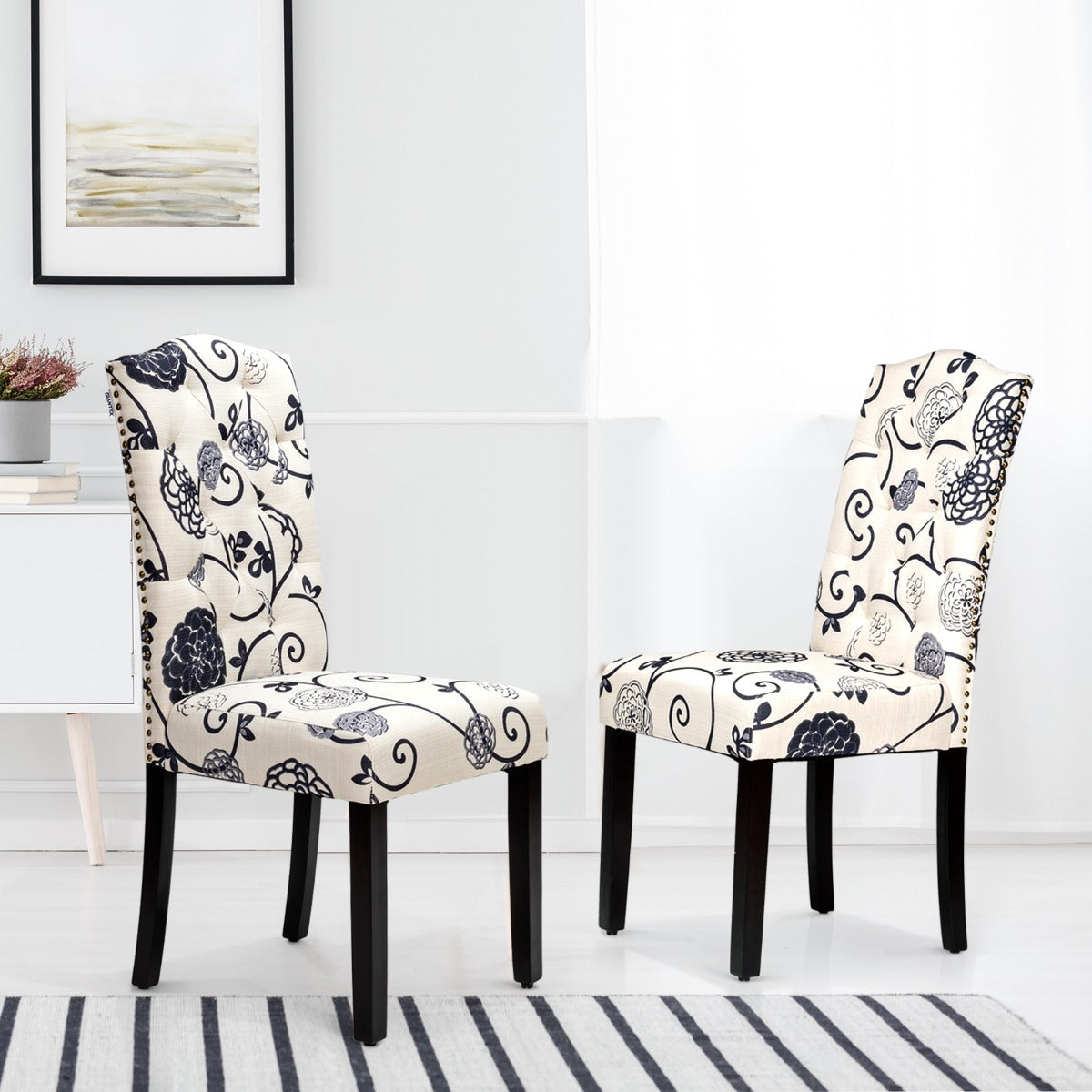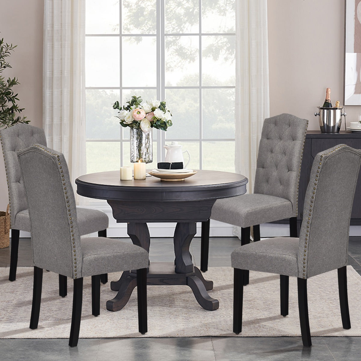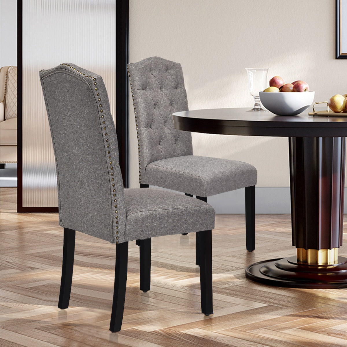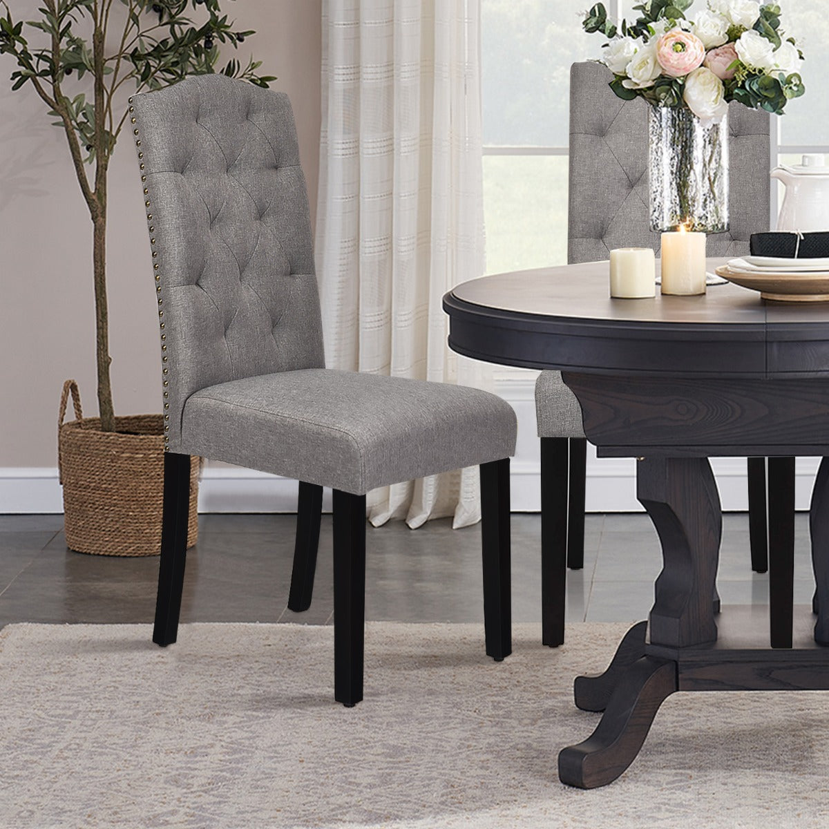 Stylish Design for Versatility: Exquisite tufted back and rivet design around the seat will add a sense of luxury and beauty to your home. With a simple and elegant style, this dining chair set is compatible seamlessly with any décor. It is perfect for your kitchen, dining room, restaurant, café and more.