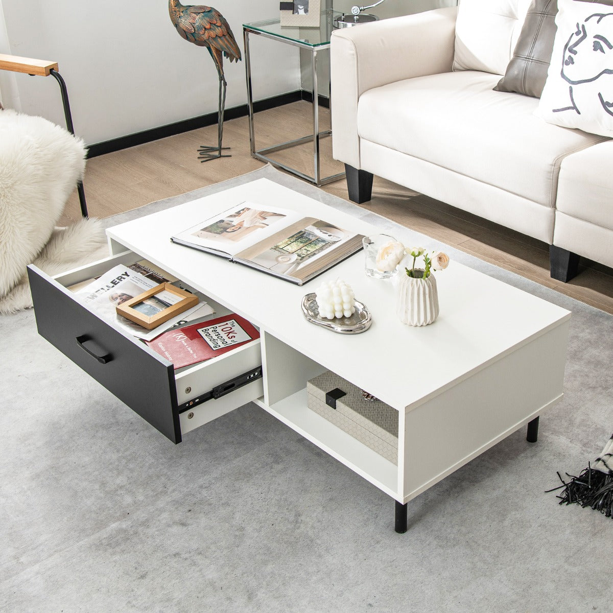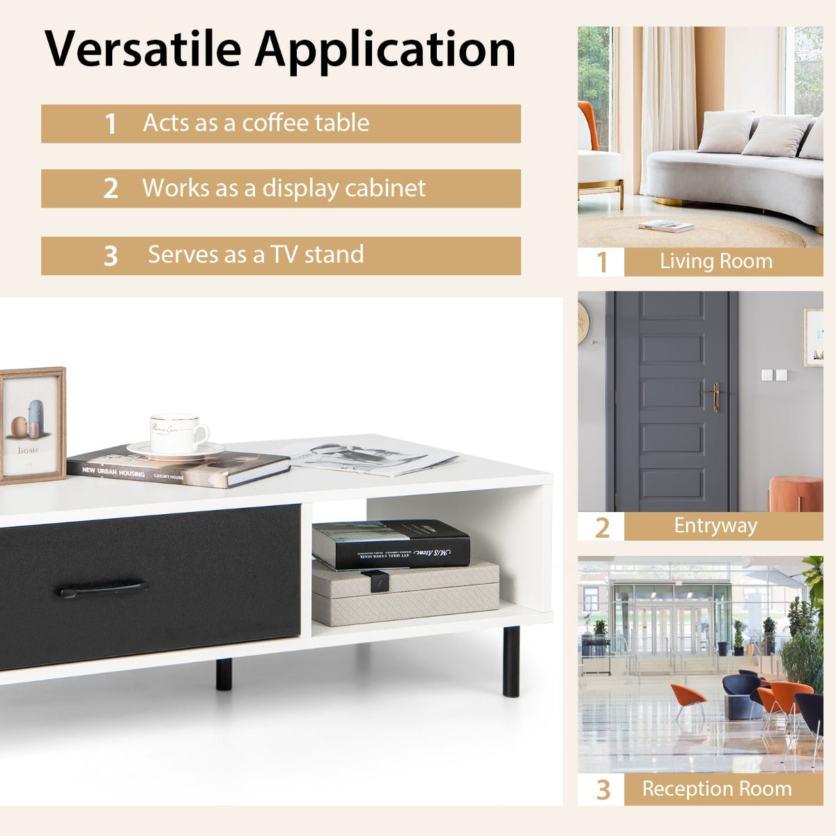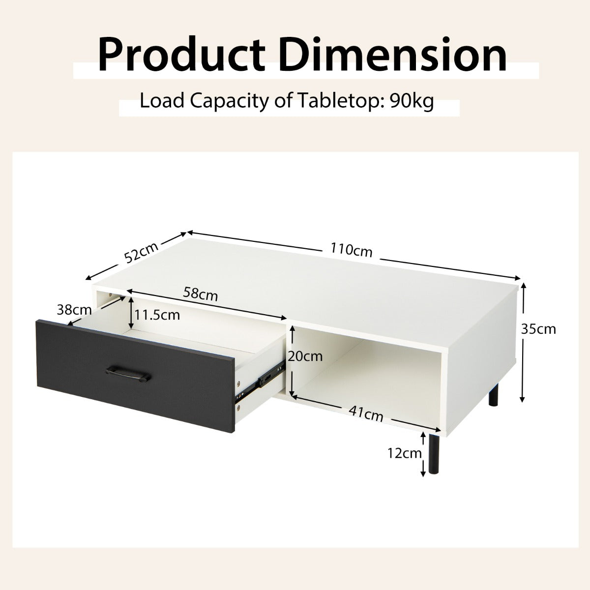 Aussies Market Versatile 2-Tier Modern Coffee Table with Pull-out Drawer for Living Room, Entryway