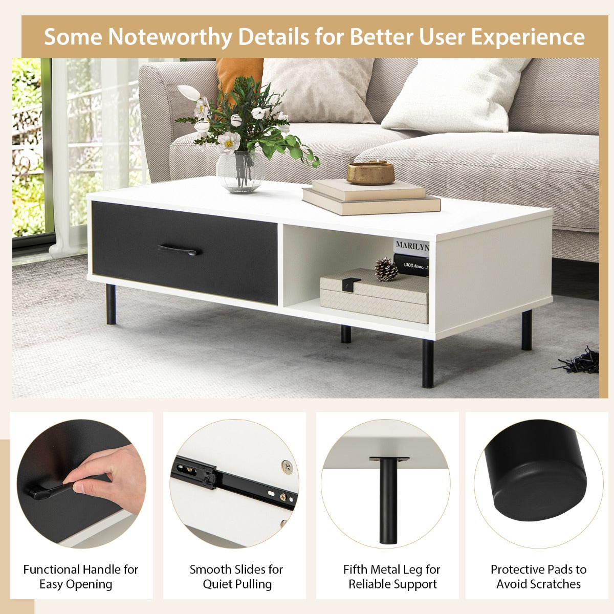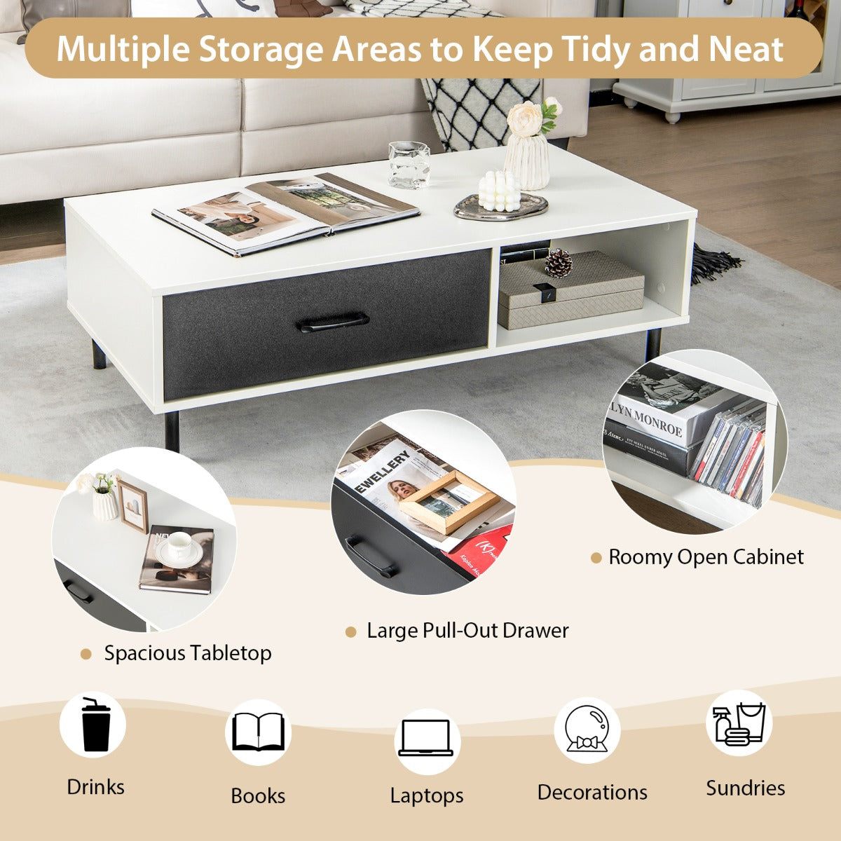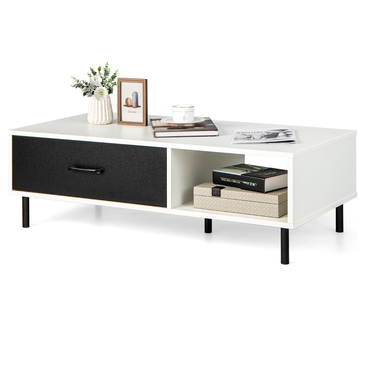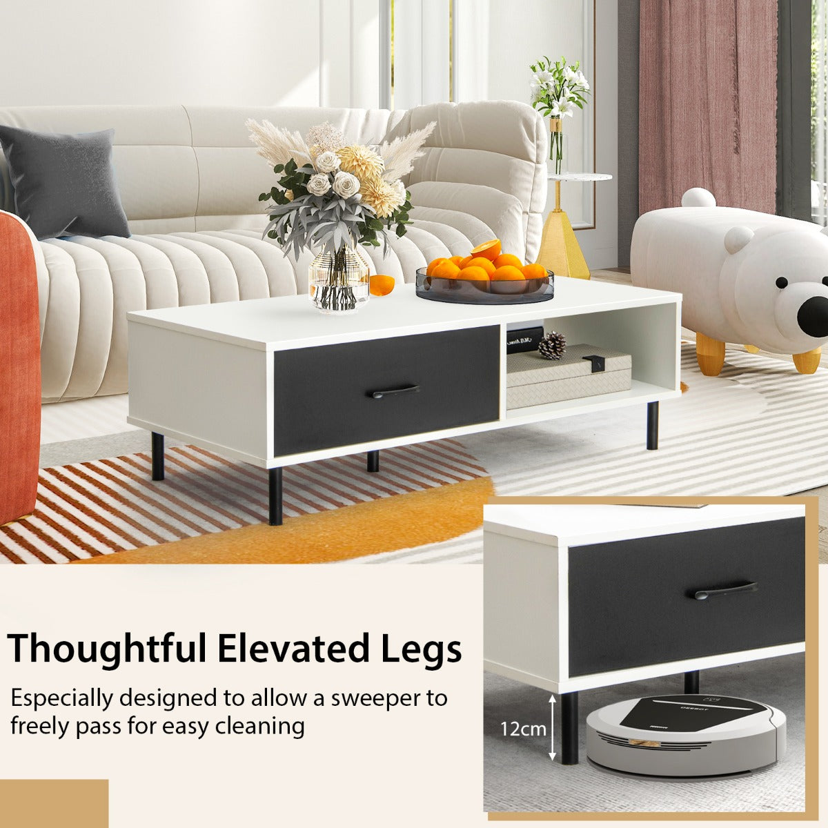 Aussies Market Versatile 2-Tier Modern Coffee Table with Pull-out Drawer for Living Room, Entryway