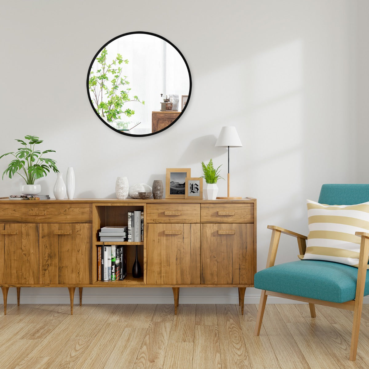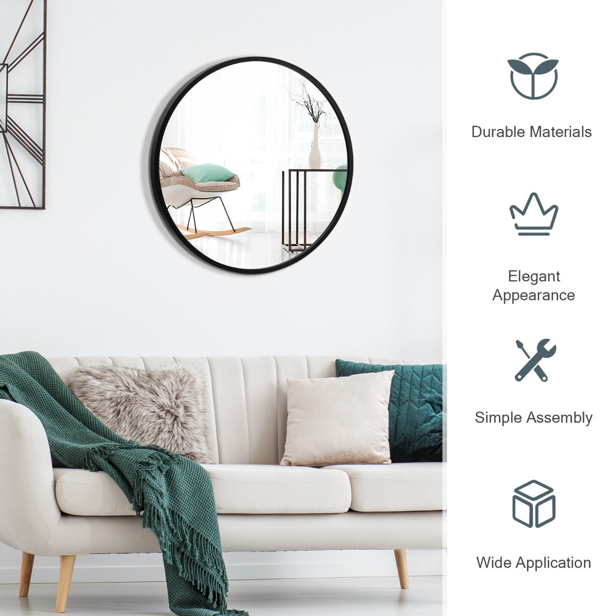 Durable & Sturdy Design: This round wall mirror has an aluminium alloy frame that is anti-rust, adapting to the bathroom environment. More importantly, the premium MDF backboard is durable so the circular bathroom wall mirror will accompany years to come.