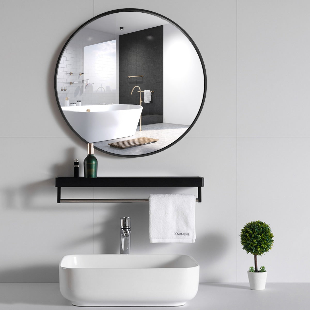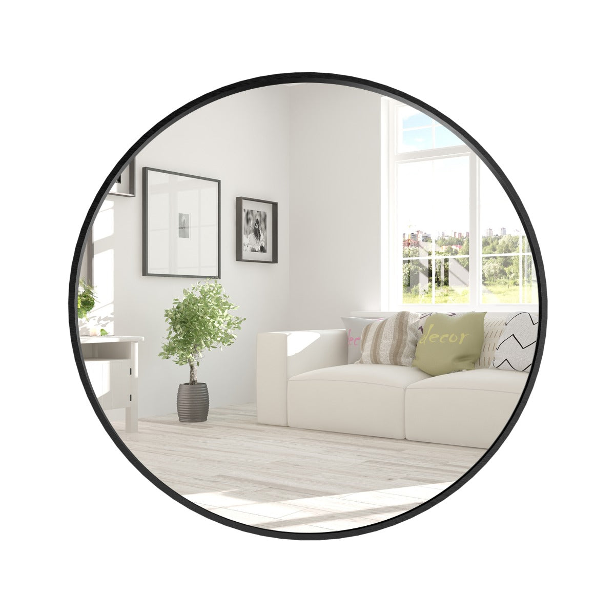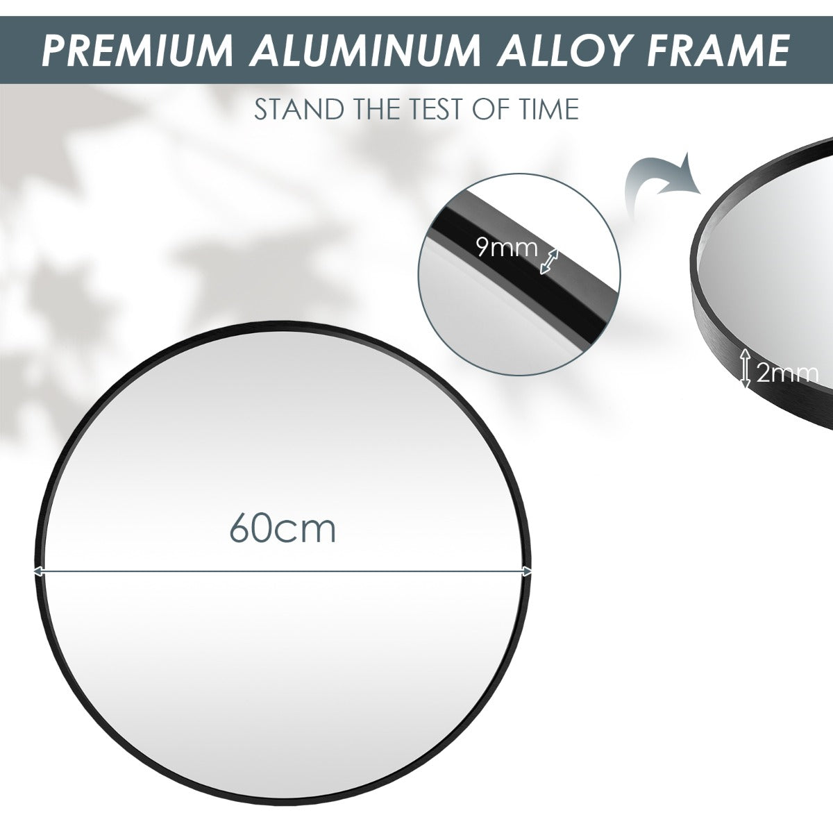 Elegant Round Wall Mirror: This 60cm sleek round mirror is the ideal addition for a bathroom or an entryway. The classy decorative alloy edge mirror protects your hands and walls, silver and bright glass mirror complements the other furniture also makes your room more unique.