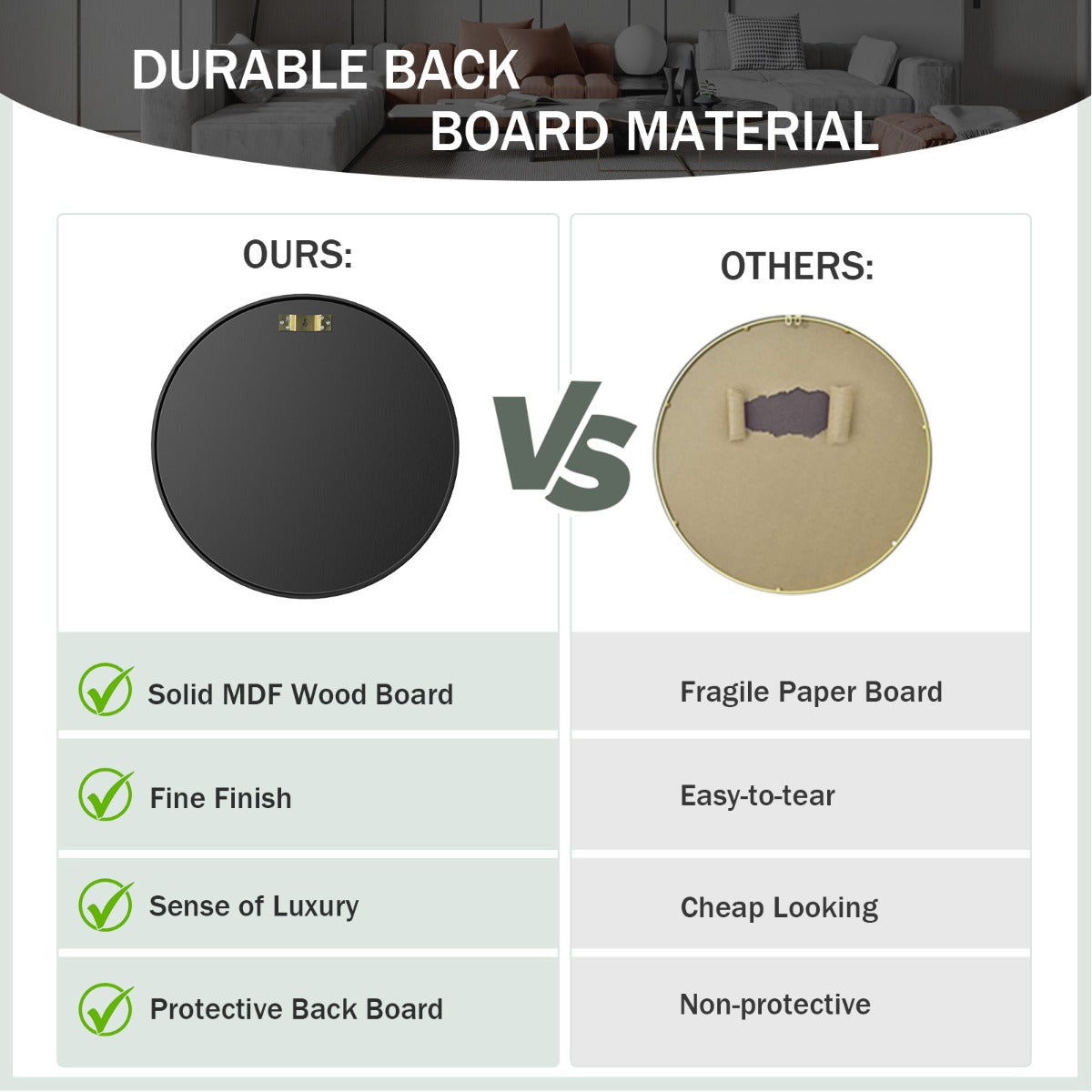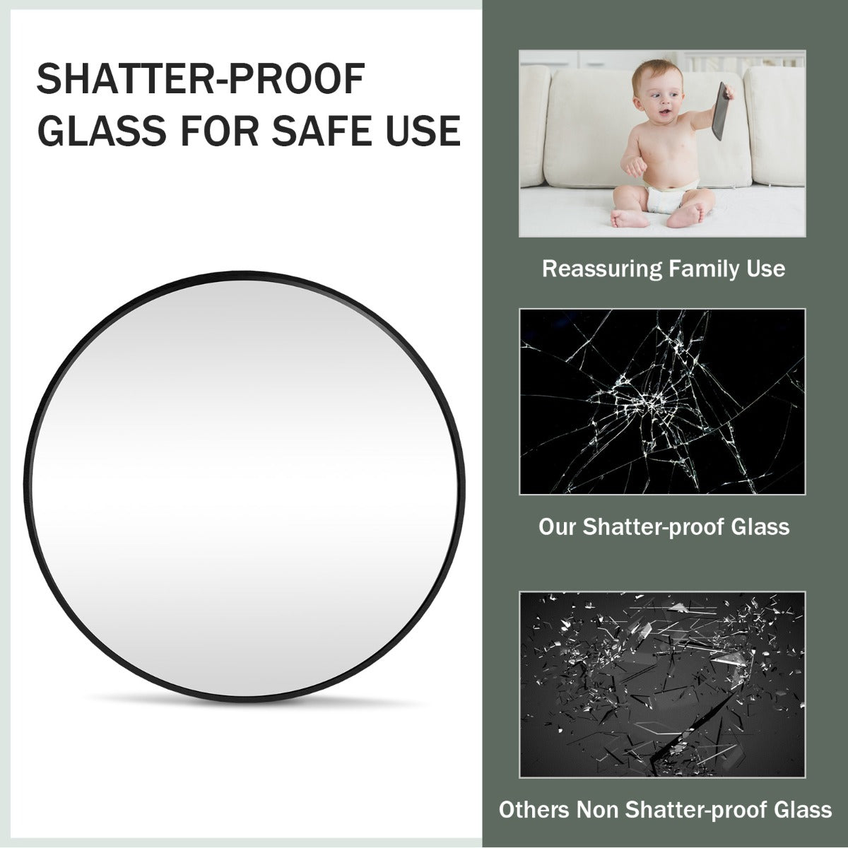 Safe & Easy Installation: The glass is safely inlaid and protected by the surrounding metal black frame construction. The mirror comes with reinforced preset hook as well as screws to hang it in a wanted position. Please ensure you hang it properly for safety.
