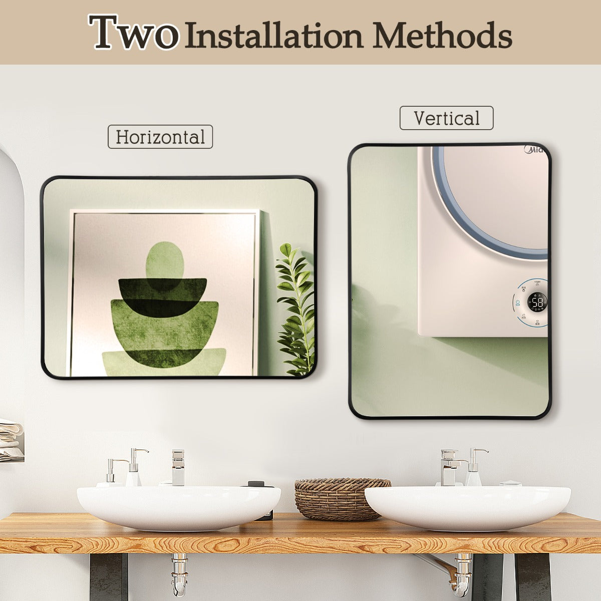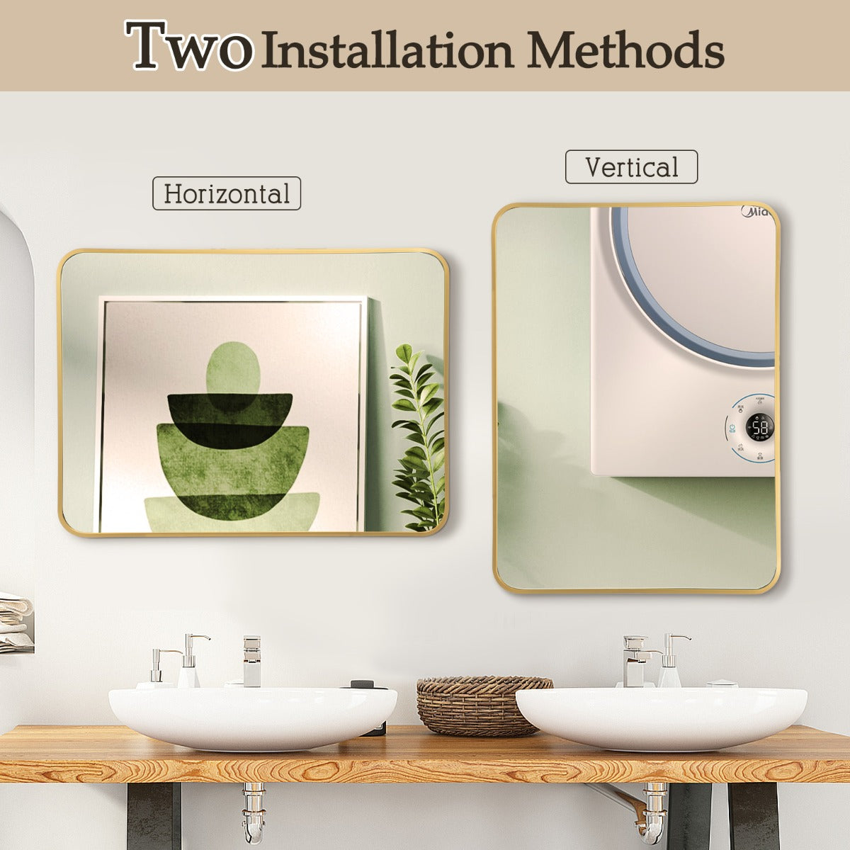 2 Ways to Hang: In order to enable you to arrange your bathroom space at your will, this aluminum alloy framed bathroom mirror can be hung both vertically and horizontally. Different methods of hanging will bring you different experiences of using this rounded rectangular bathroom mirror.