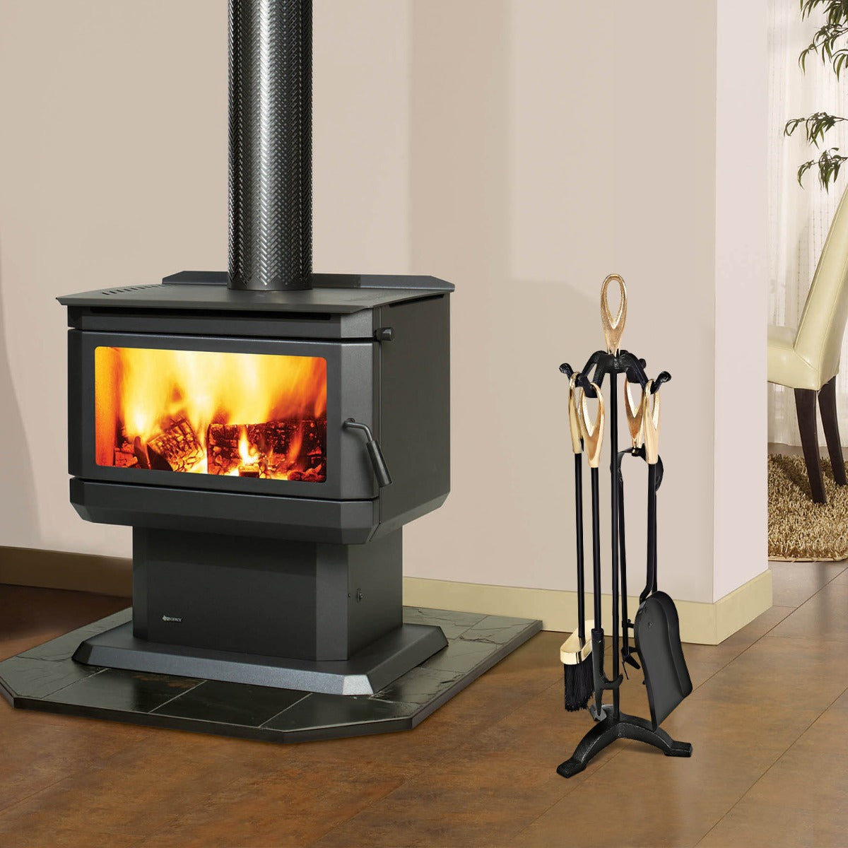 Aussies Market 5 Pieces Iron Fireplace Set with Broom & Shovel & Poker & Tongs & Stand