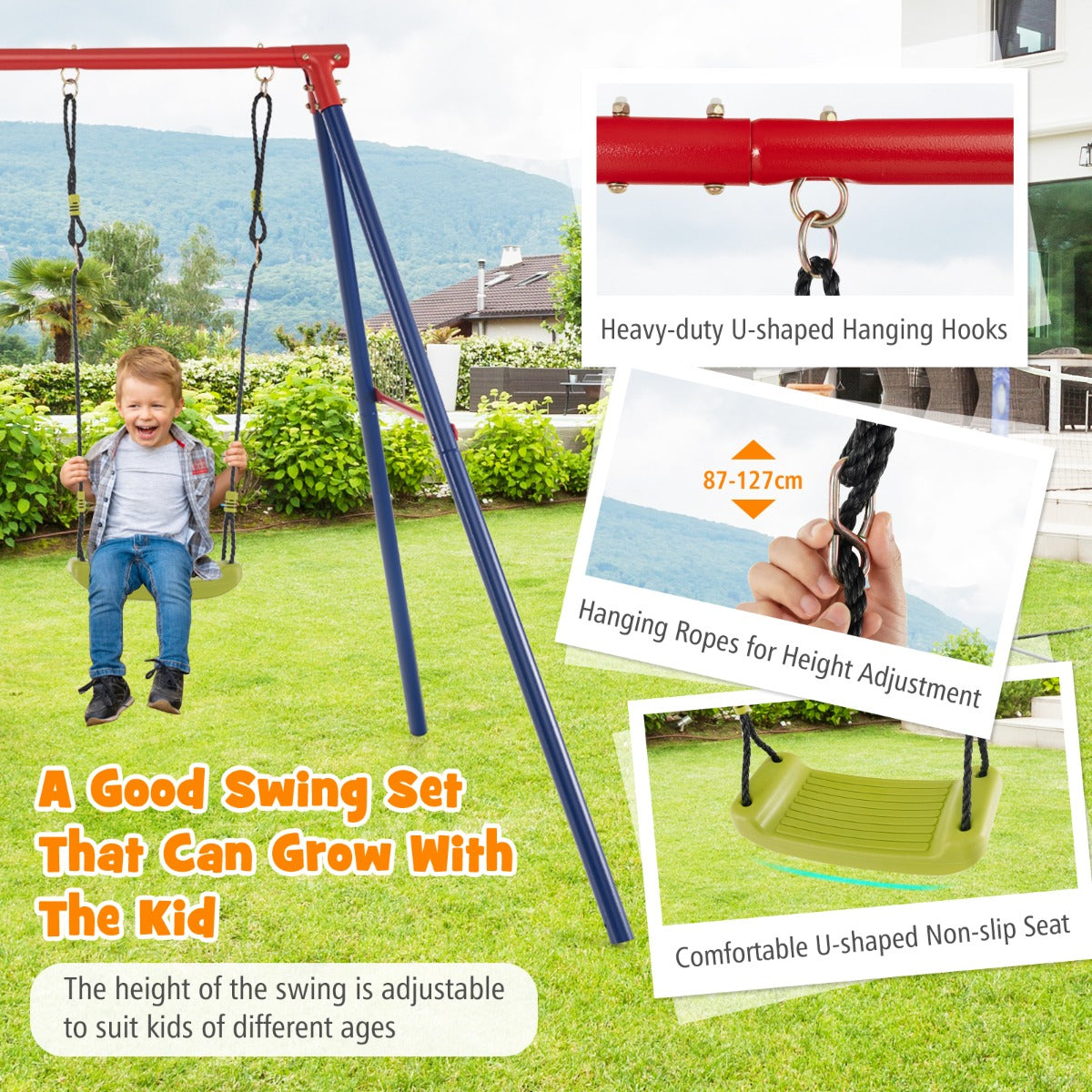 Aussies Market 2-in-1 Outdoor Swing Set with Adjustable Height for Kids