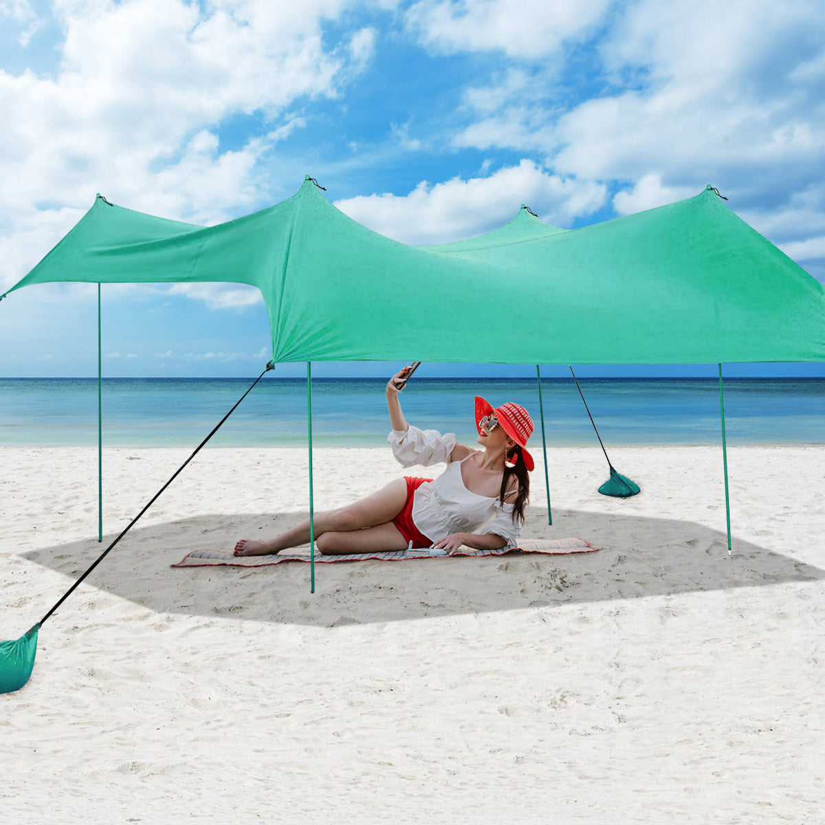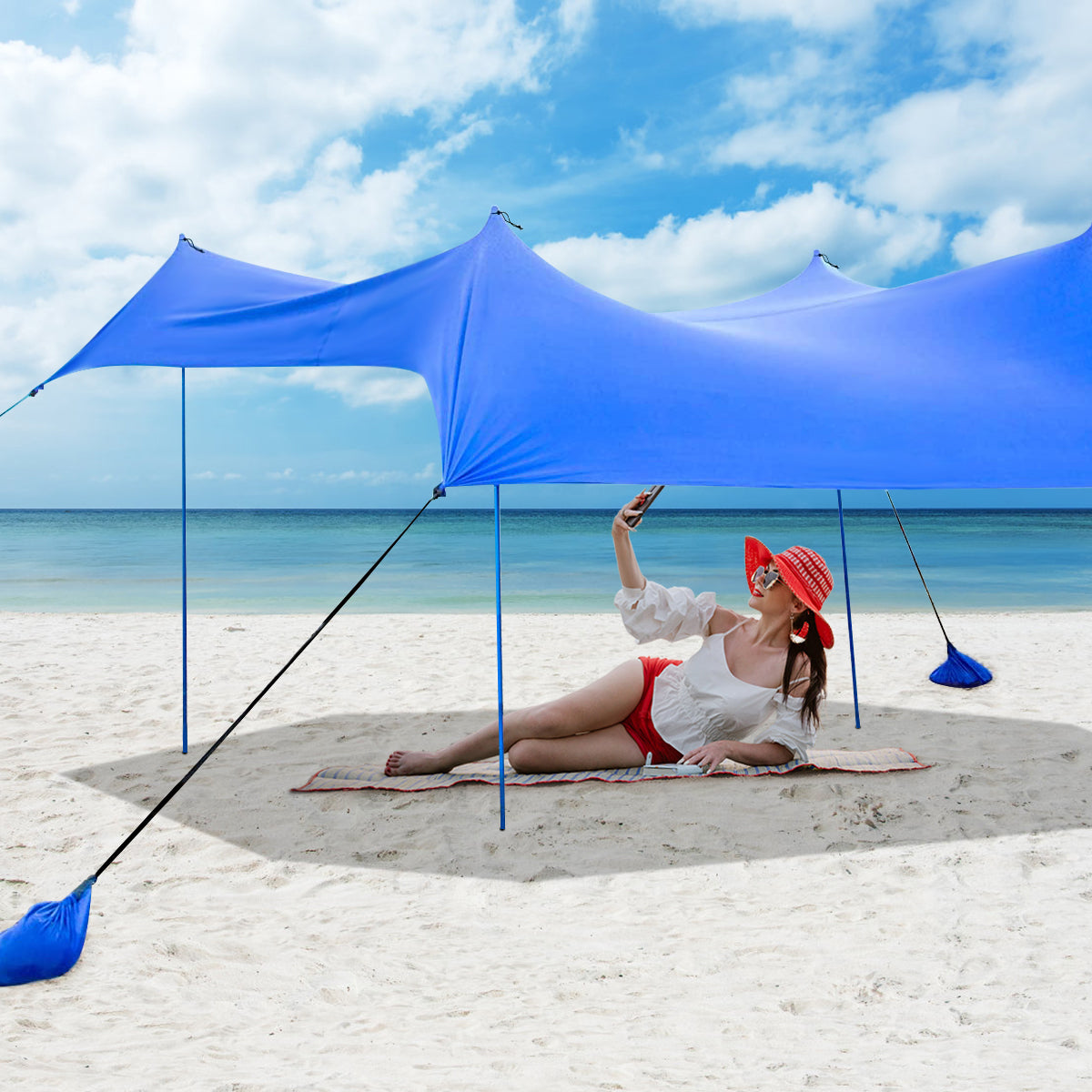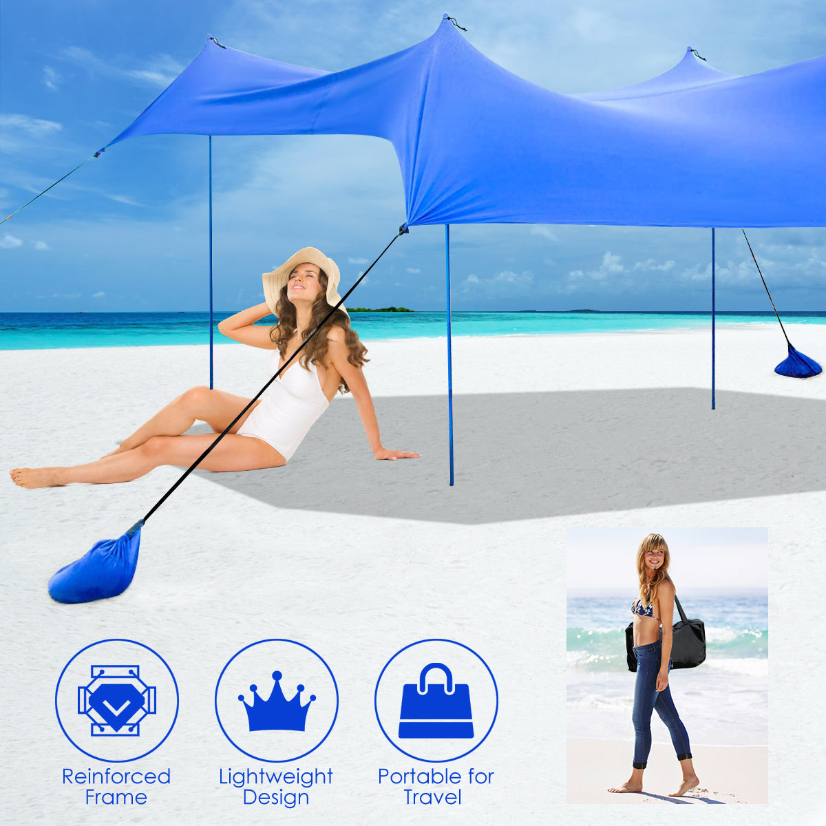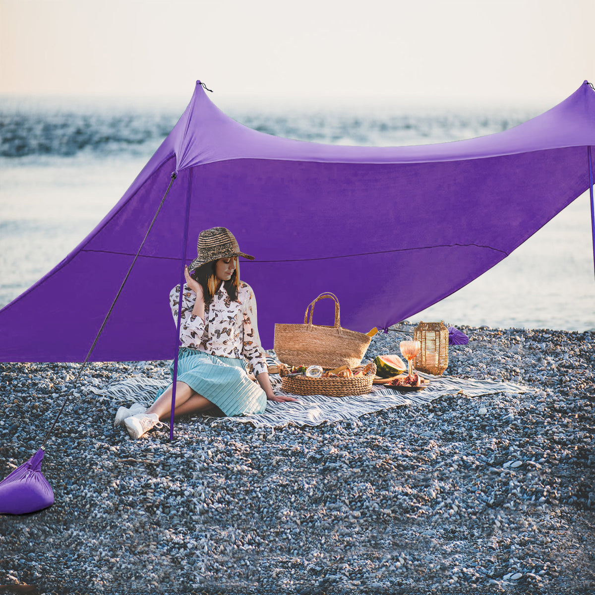 Large Sunshade Area: Designed with an idea of comfortable summer enjoyment, this beach canopy provides UPF50 Plus sun protection on hot days. Measuring 300 x 280 cm, it also provides a large sunshade area that allows 6 to 7 adults lying down effortless, which helps you create relaxing outdoor lifestyle.