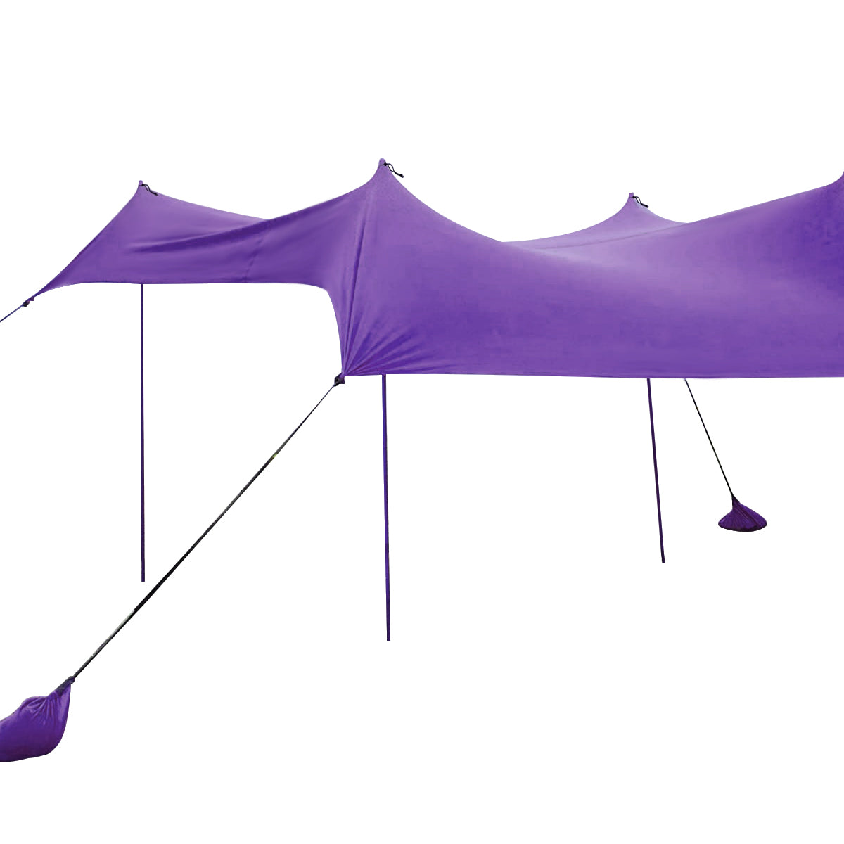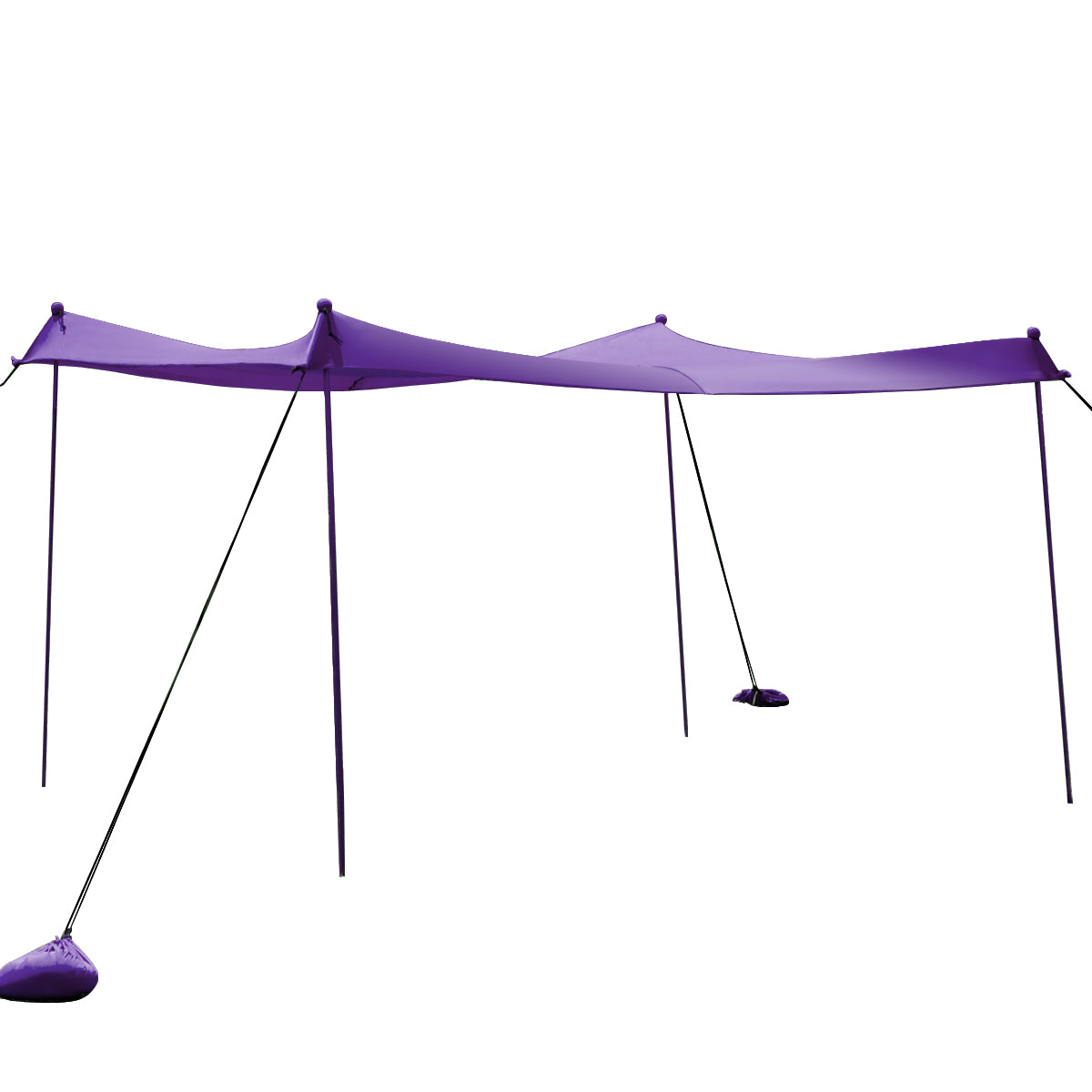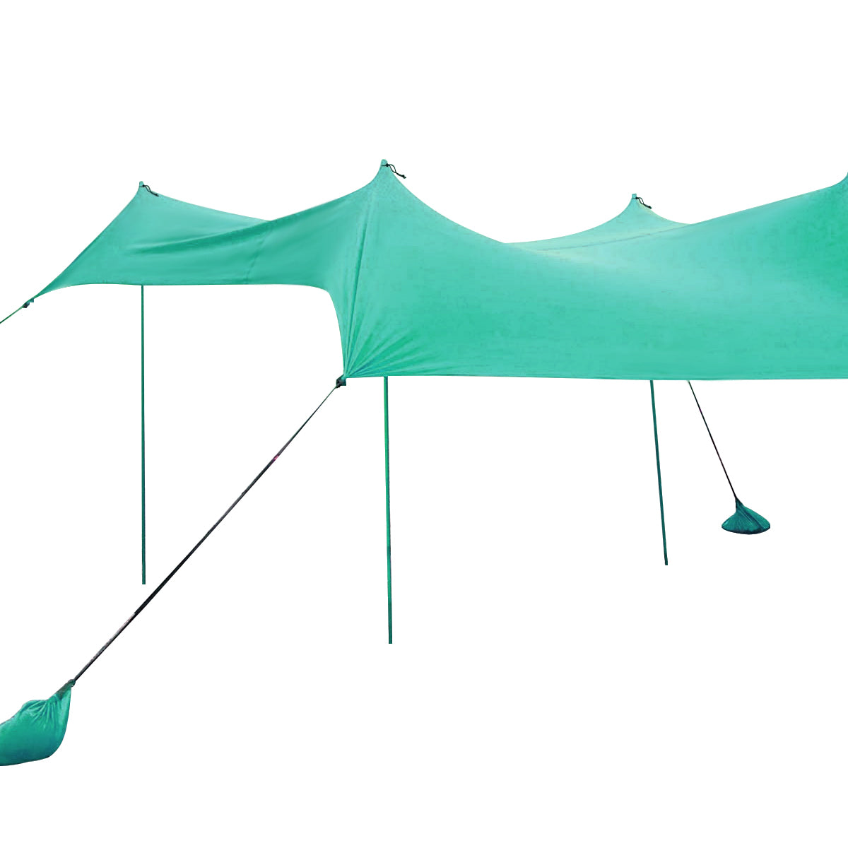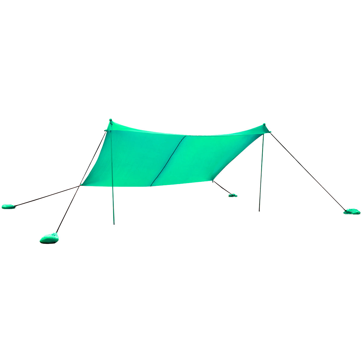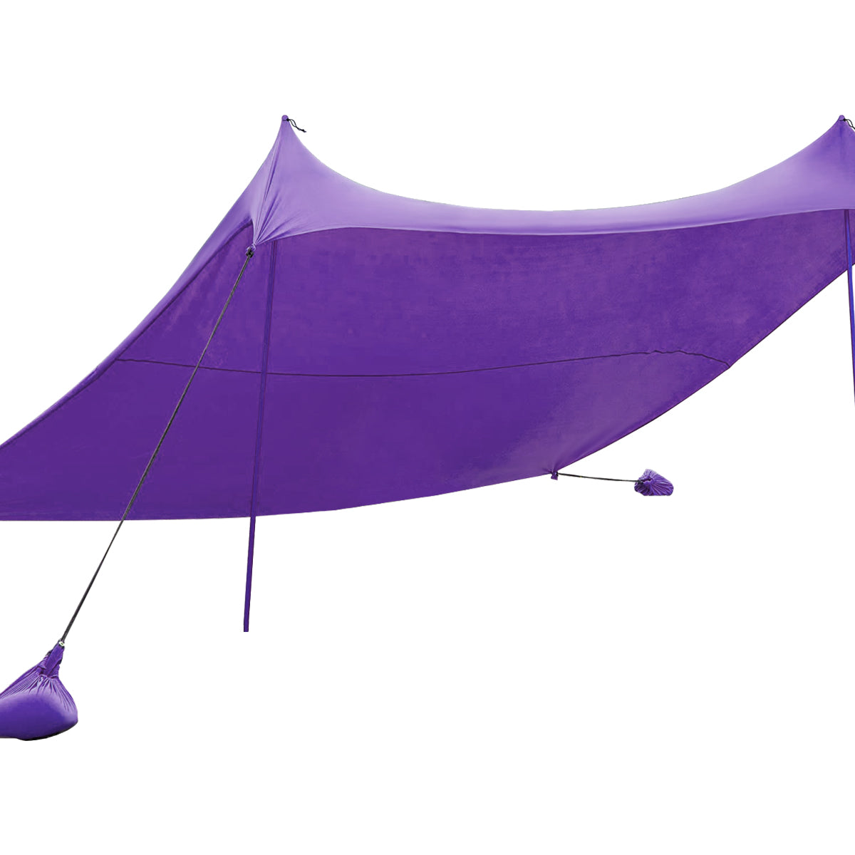 Improved Design for Stability: The bottom of the pole can be firmly anchored to the sand or rocks with extra peg stakes provided. Equipped with 4 sandbags, the beach tent keeps stable at certain position. Besides, the round balls on the top are tightly fixed with bungee cords to make the canopy more sturdy.