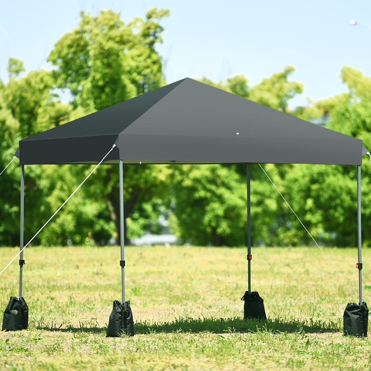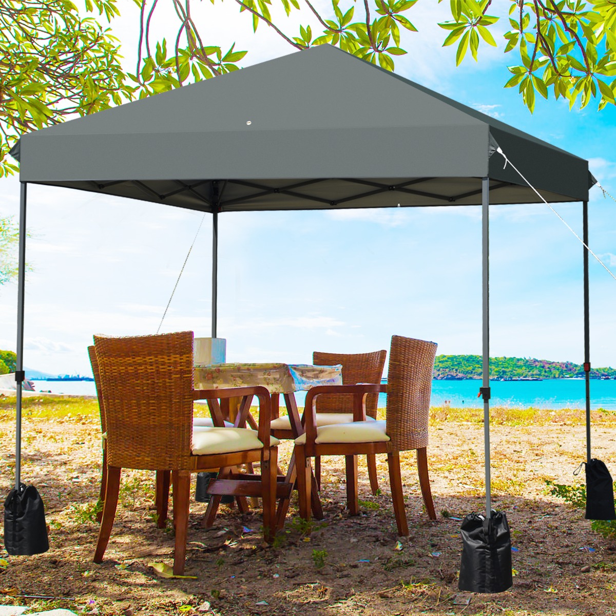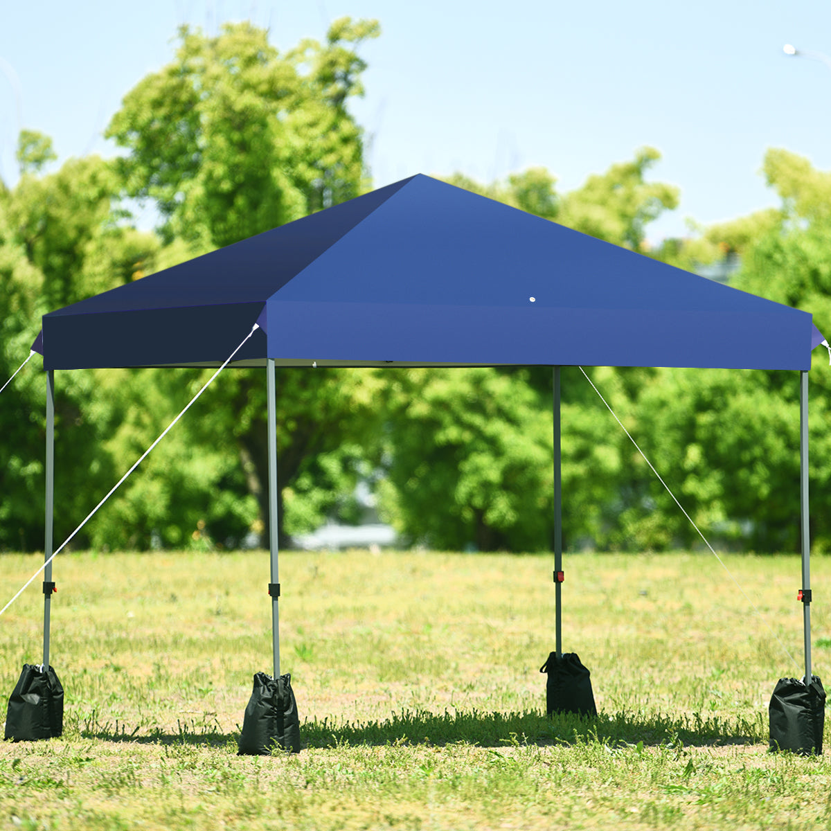 Sturdy Frame with Adjustable Height: The frame of this folding canopy is made of premium steel, which is sturdy and durable. Comes with stakes, wind ropes and large capacity sandbags, the frame of the tent will be stable in breezy days. And the height of canopy can be adjusted with three positions.