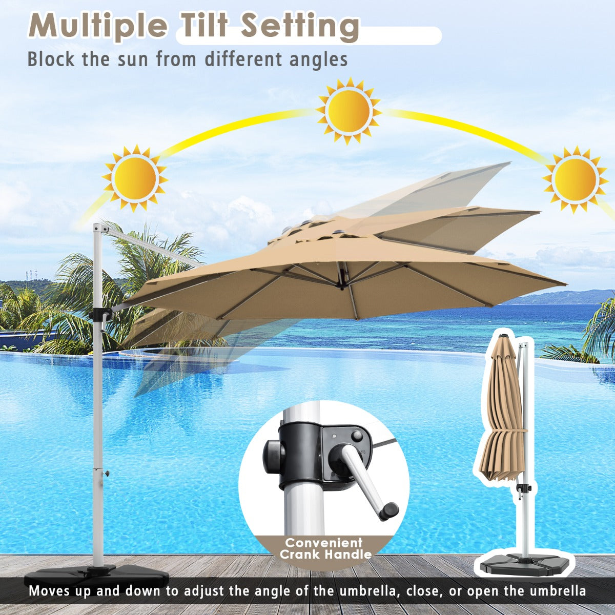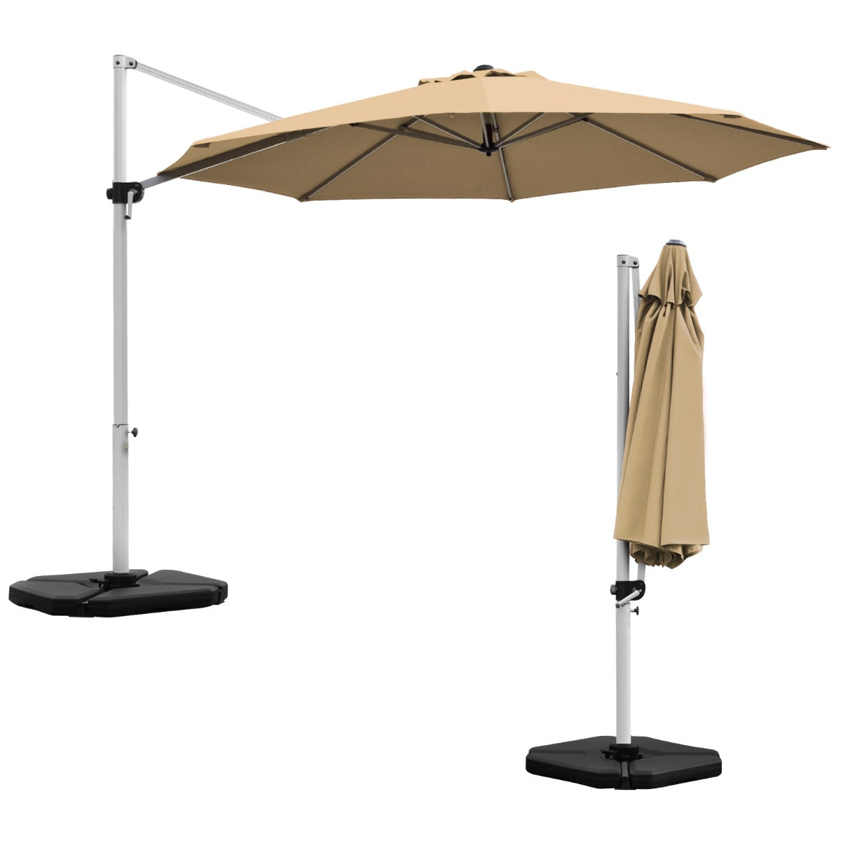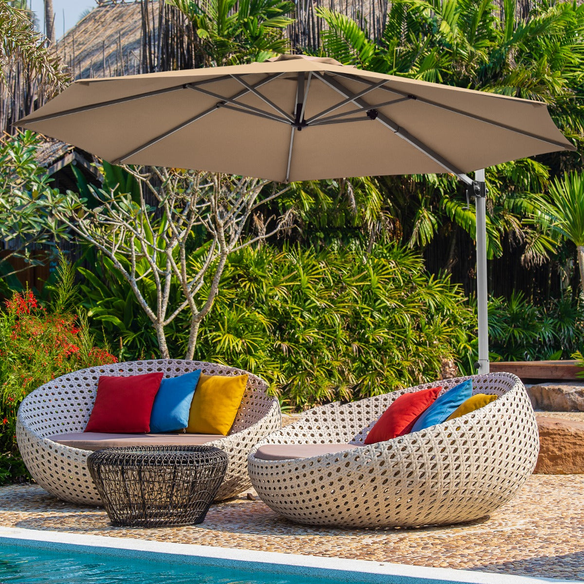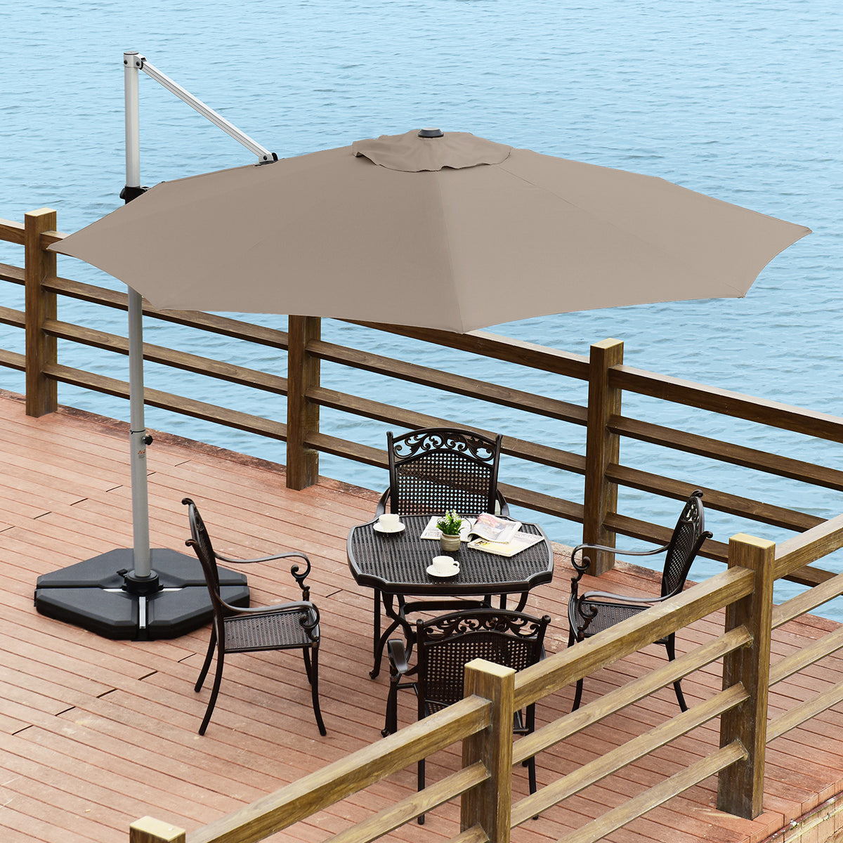 All-Direction Shade Enjoy: With the 335 cm diameter offset canopy, this deluxe patio umbrella will provide a spacious area of shade that can be used over tables and swimming pools to protect you from summer sun, sudden rain, harmful rays and dazzling light. Besides, the umbrella can be rotated 360 degrees to provide you with more sunshade solutions.