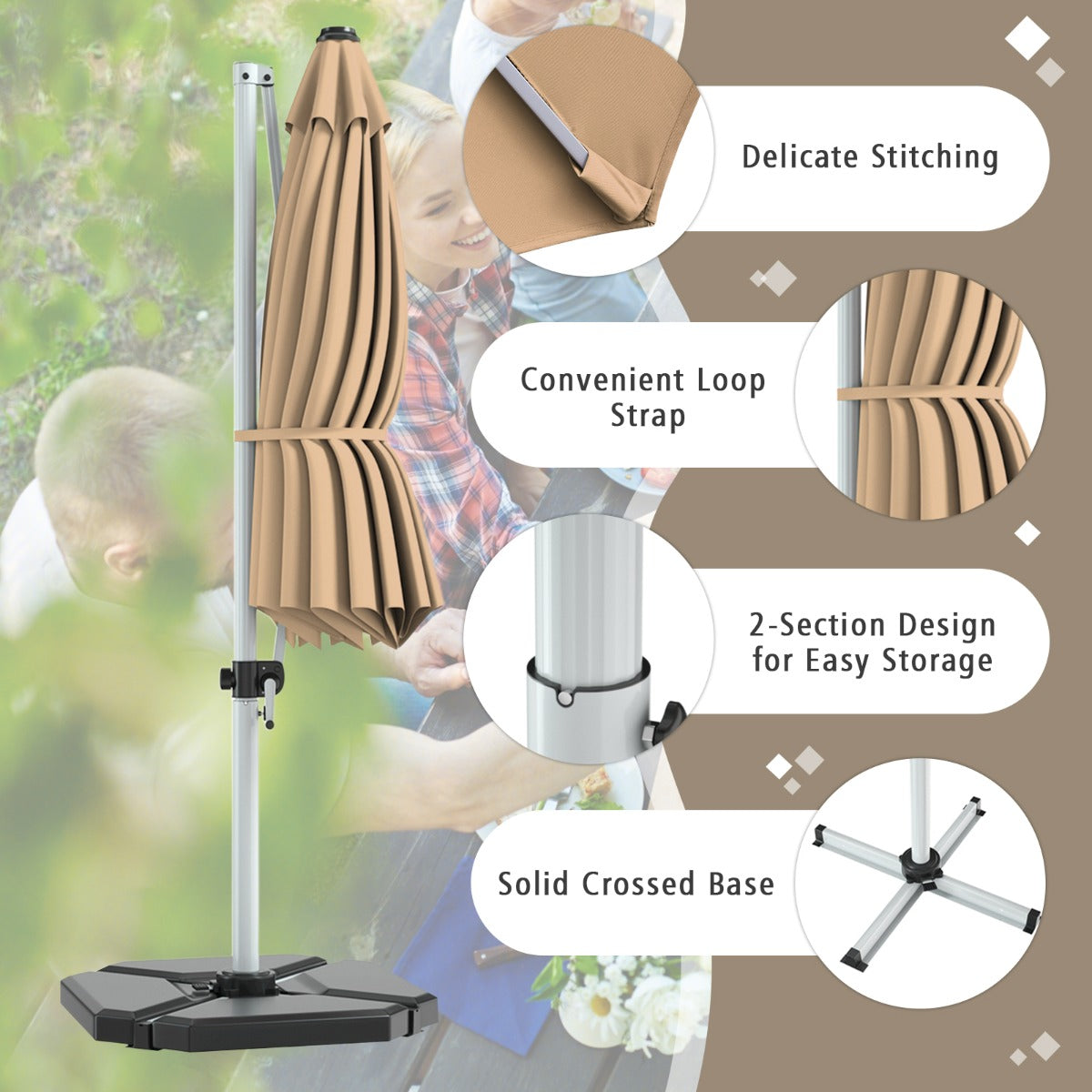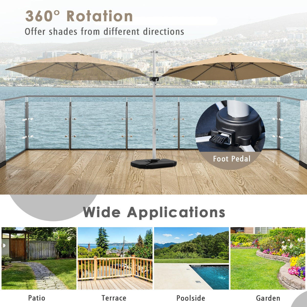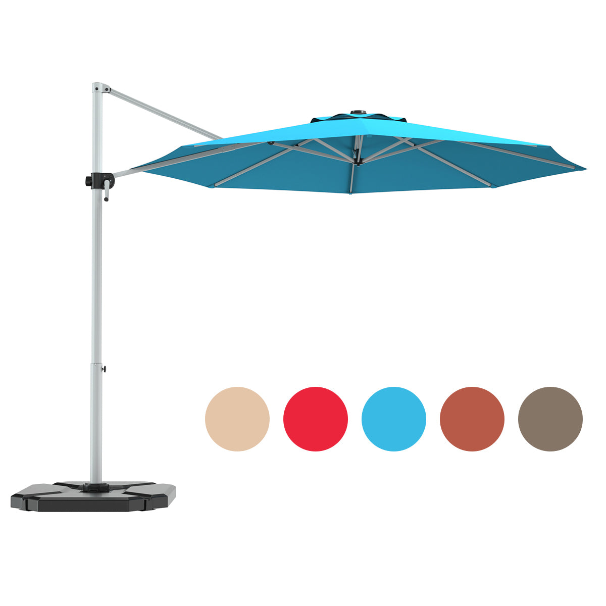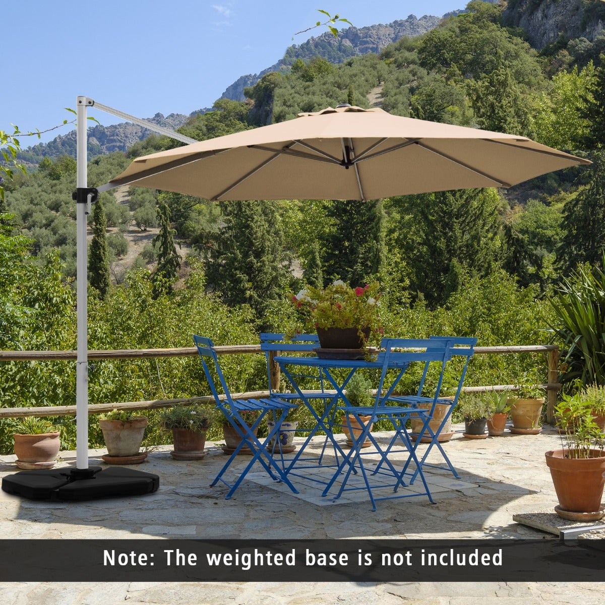 All-Direction Shade Enjoy: With the 335 cm diameter offset canopy, this deluxe patio umbrella will provide a spacious area of shade that can be used over tables and swimming pools to protect you from summer sun, sudden rain, harmful rays and dazzling light. Besides, the umbrella can be rotated 360 degrees to provide you with more sunshade solutions.