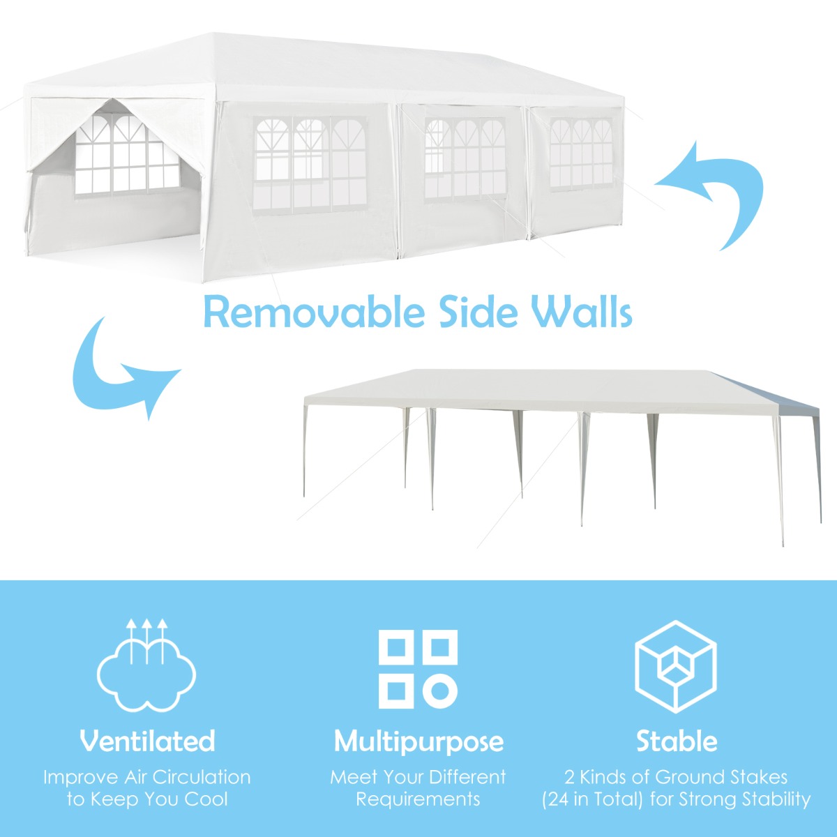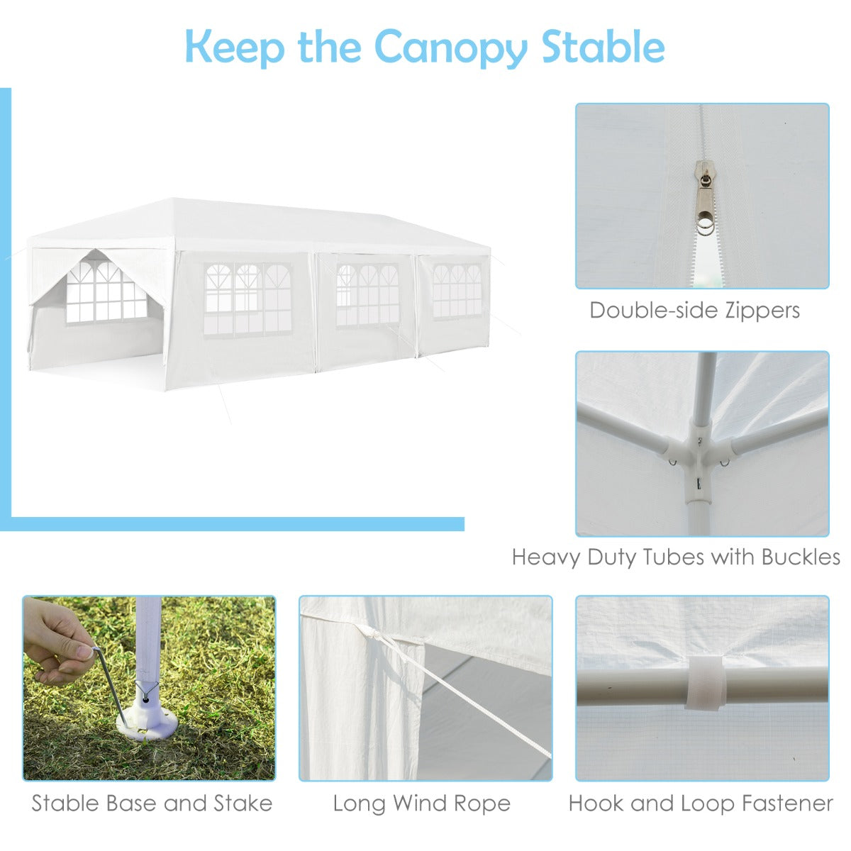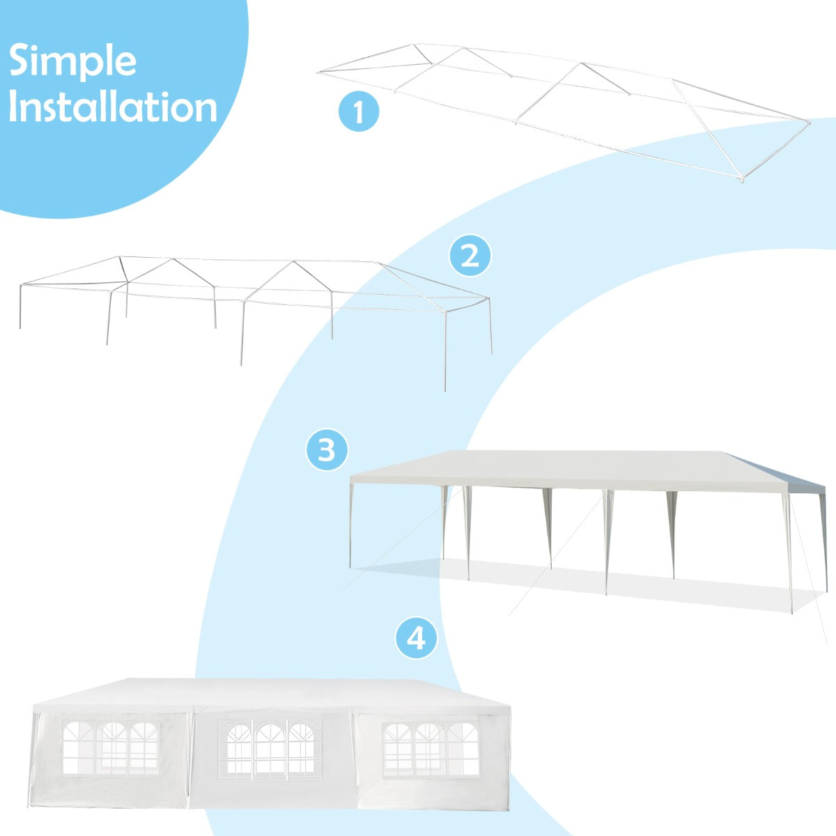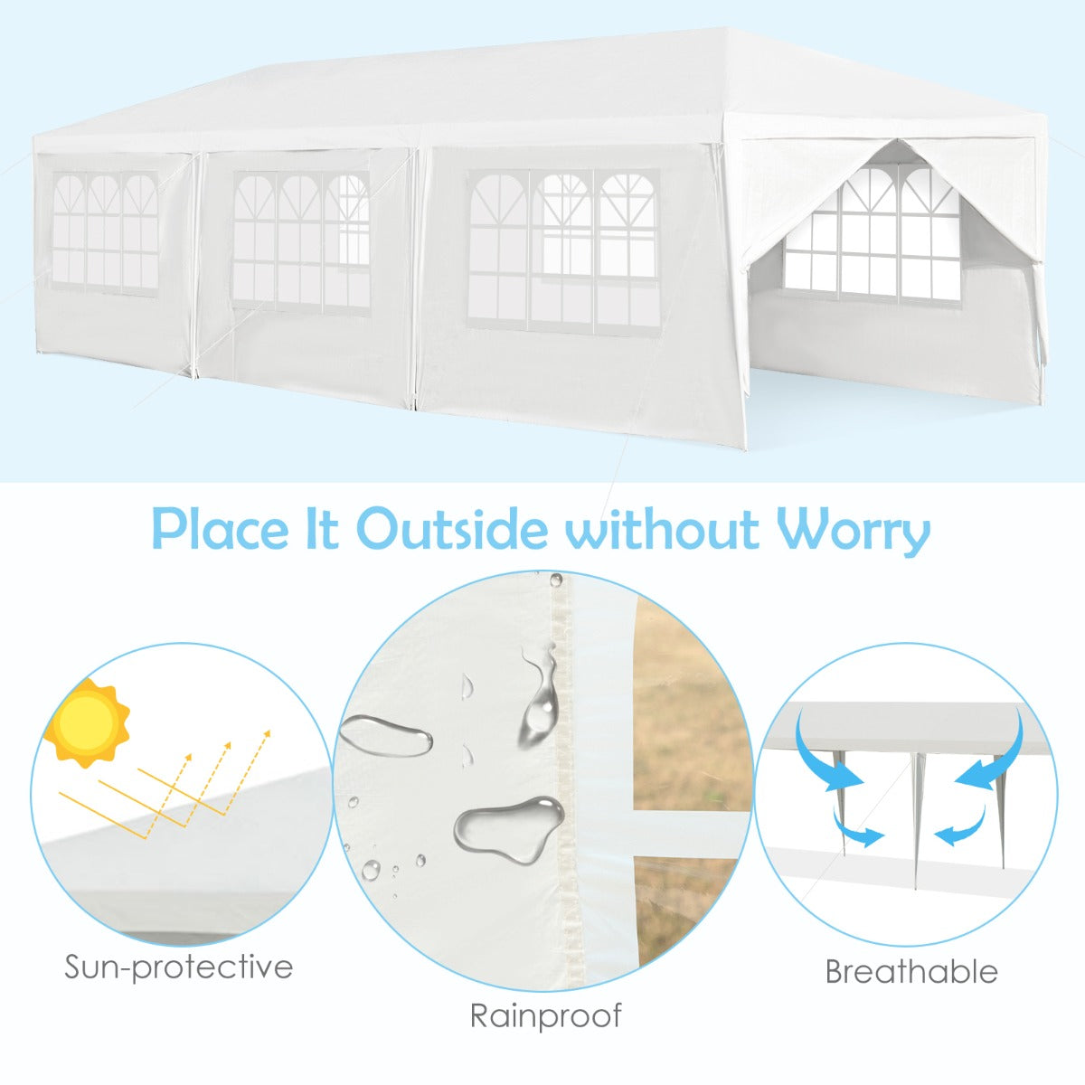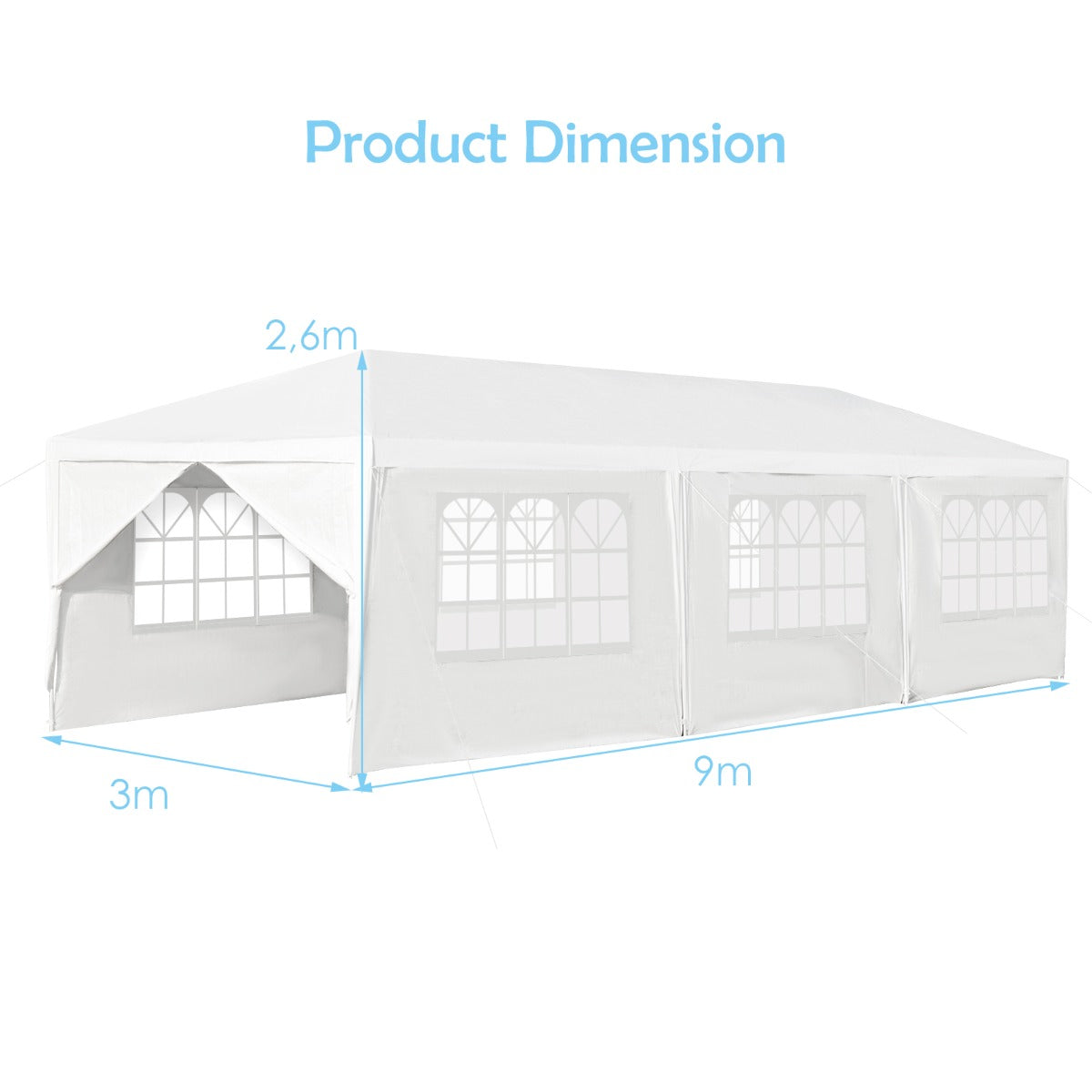 Large Inner Space: Our 3m x 9m outdoor tent has spacious inner space for you and your friends to have activities. You won't feel crowded even if a lot of people stay in the gazebo together. Regardless of rain or sunshine, it will probably not affect outdoor activities.