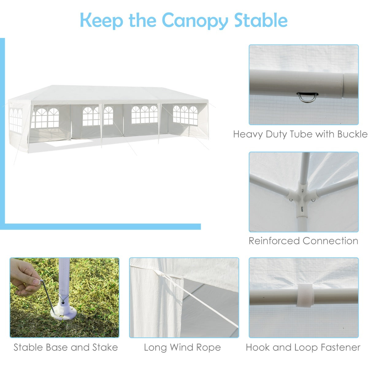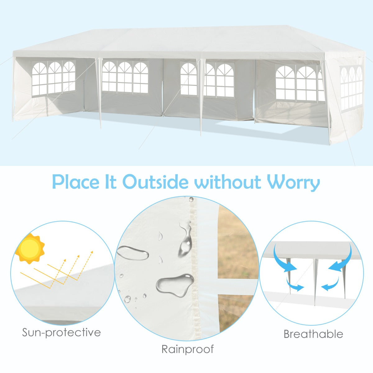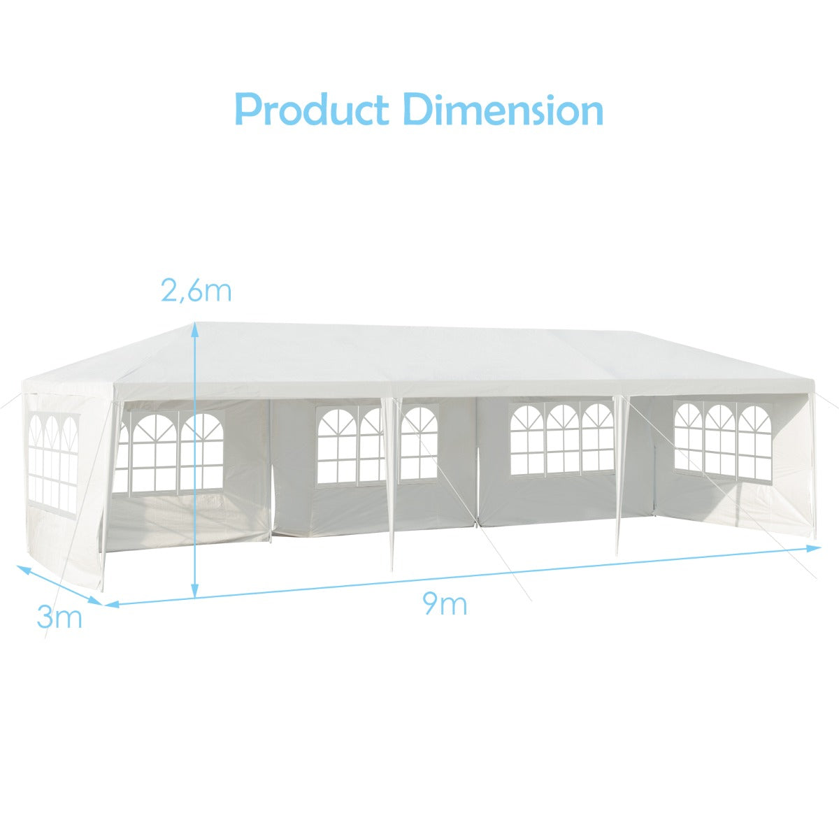 Large Inner Space: Our 3m x 9m outdoor tent has spacious inner space for you and your friends to have activities. You won't feel crowded even if a lot of people stay in the gazebo together. Regardless of rain or sunshine, it will probably not affect outdoor activities.