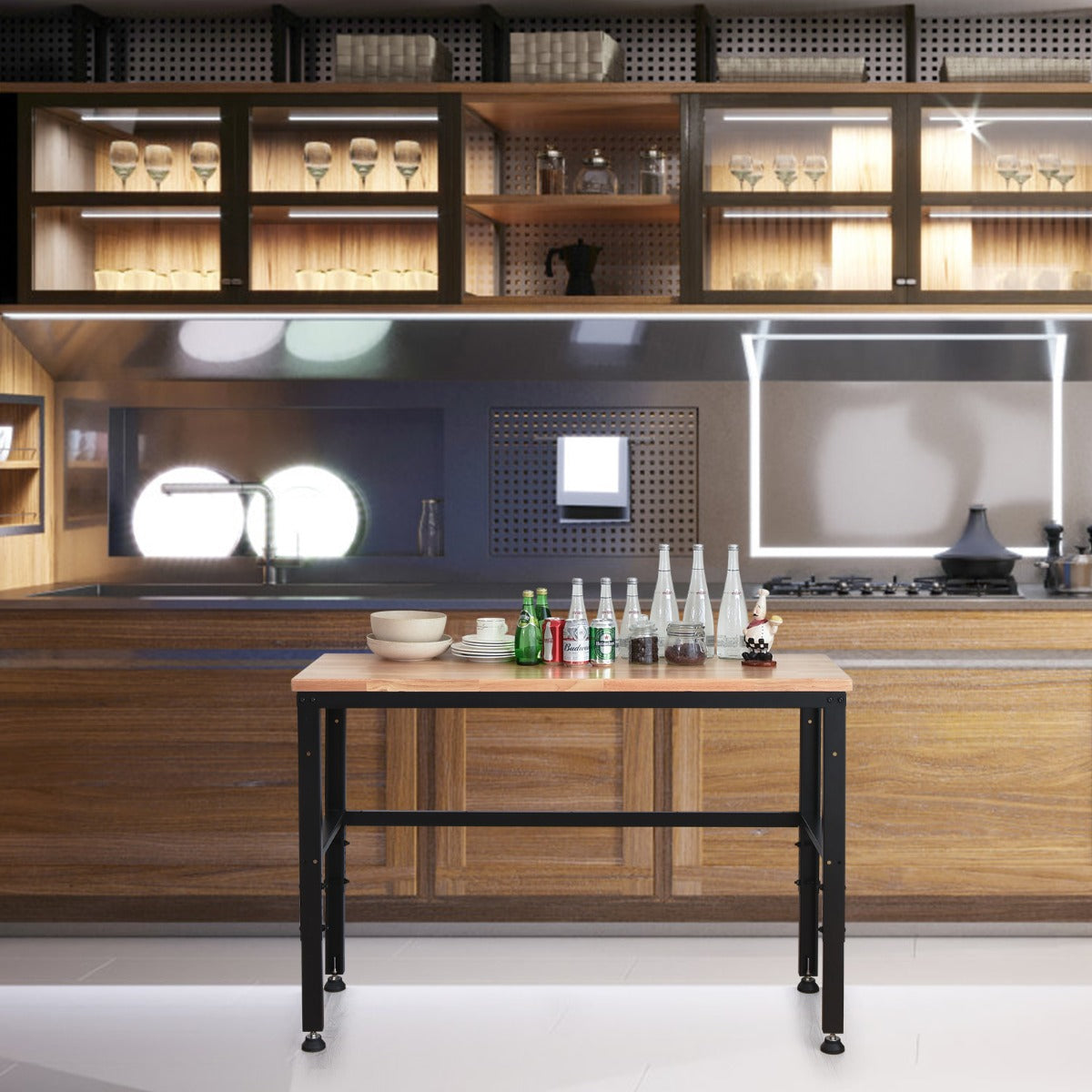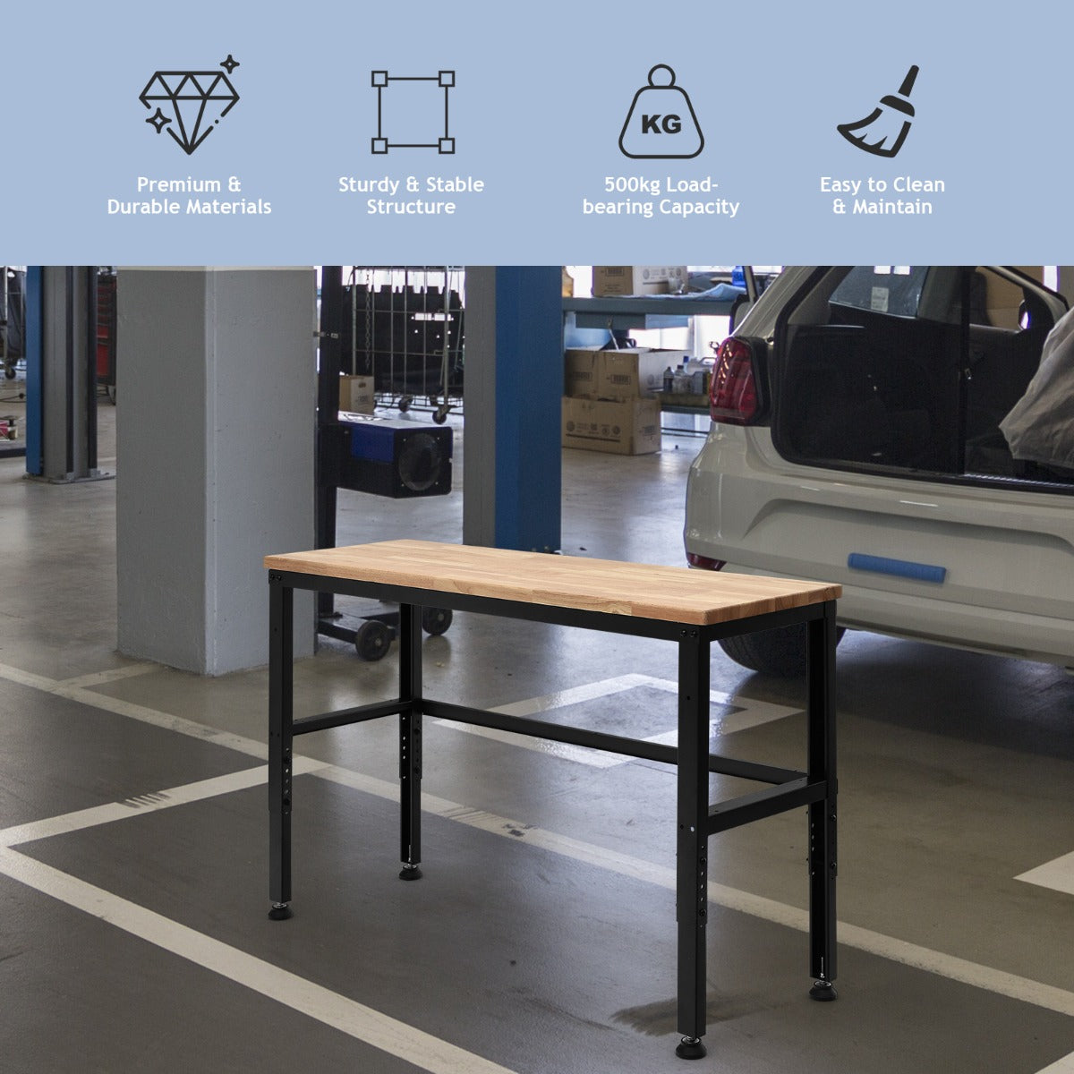 Solid Oak Wood Tabletop: The wide tabletop of this workbench is crafted from strong and hard oak wood with varnish coated, which makes it waterproof and anti-cracking for long-time use. Meanwhile, the tabletop can support 500kg so that it can handle different projects with ease.