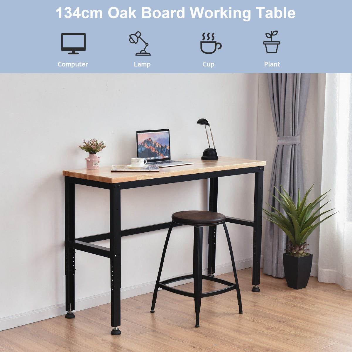 Made of oak and steel, our 134cm working table with outstanding stability and durability ensures high weight capacity, which can hold up to 500kg. In addition, it has 3-level adjustable heights from 89cm to 96.5cm. In this way, users can set an ideal height for any project according to their requirements. Specifically speaking, it is a working table for garages, commercial shops, automotive repair shops, office buildings and families.