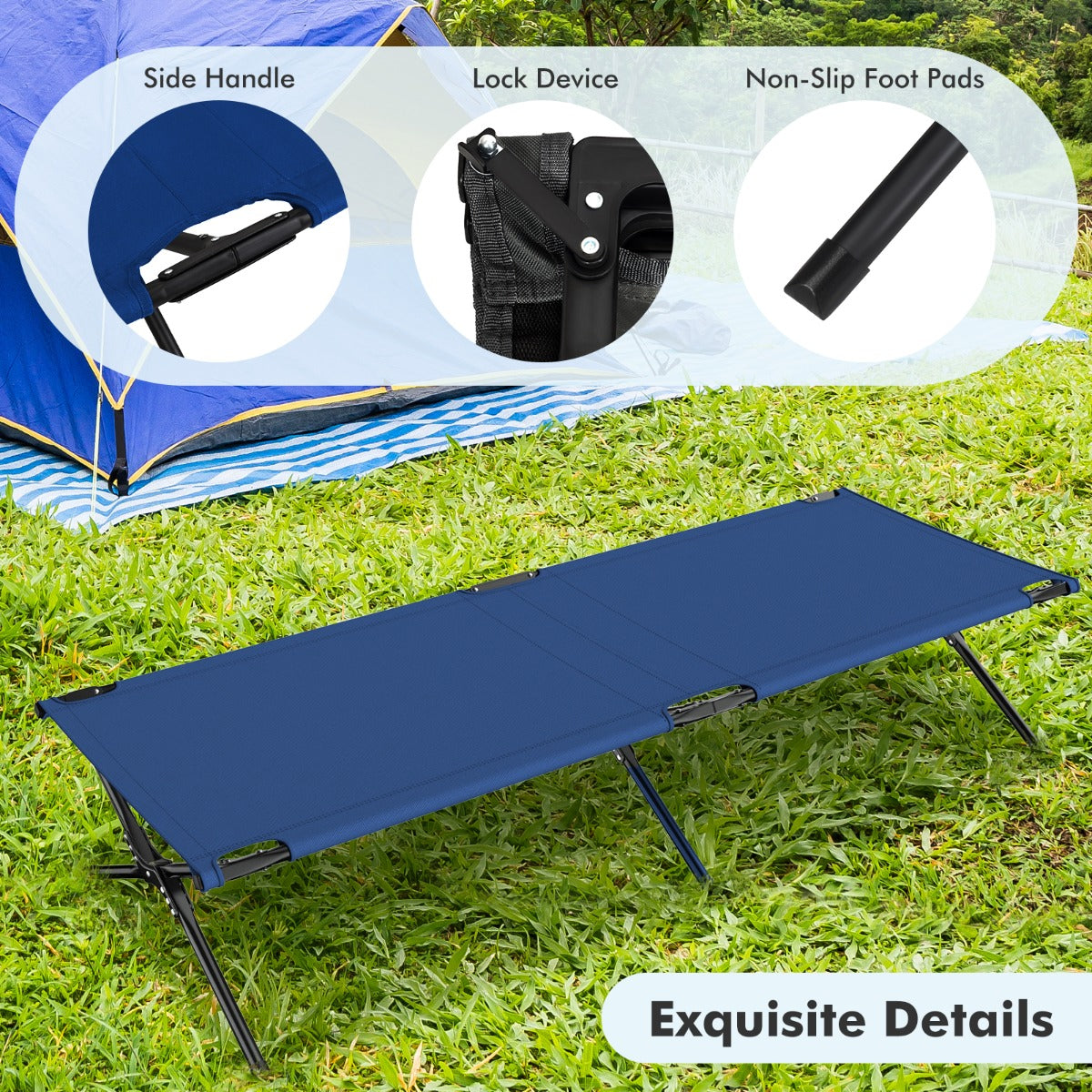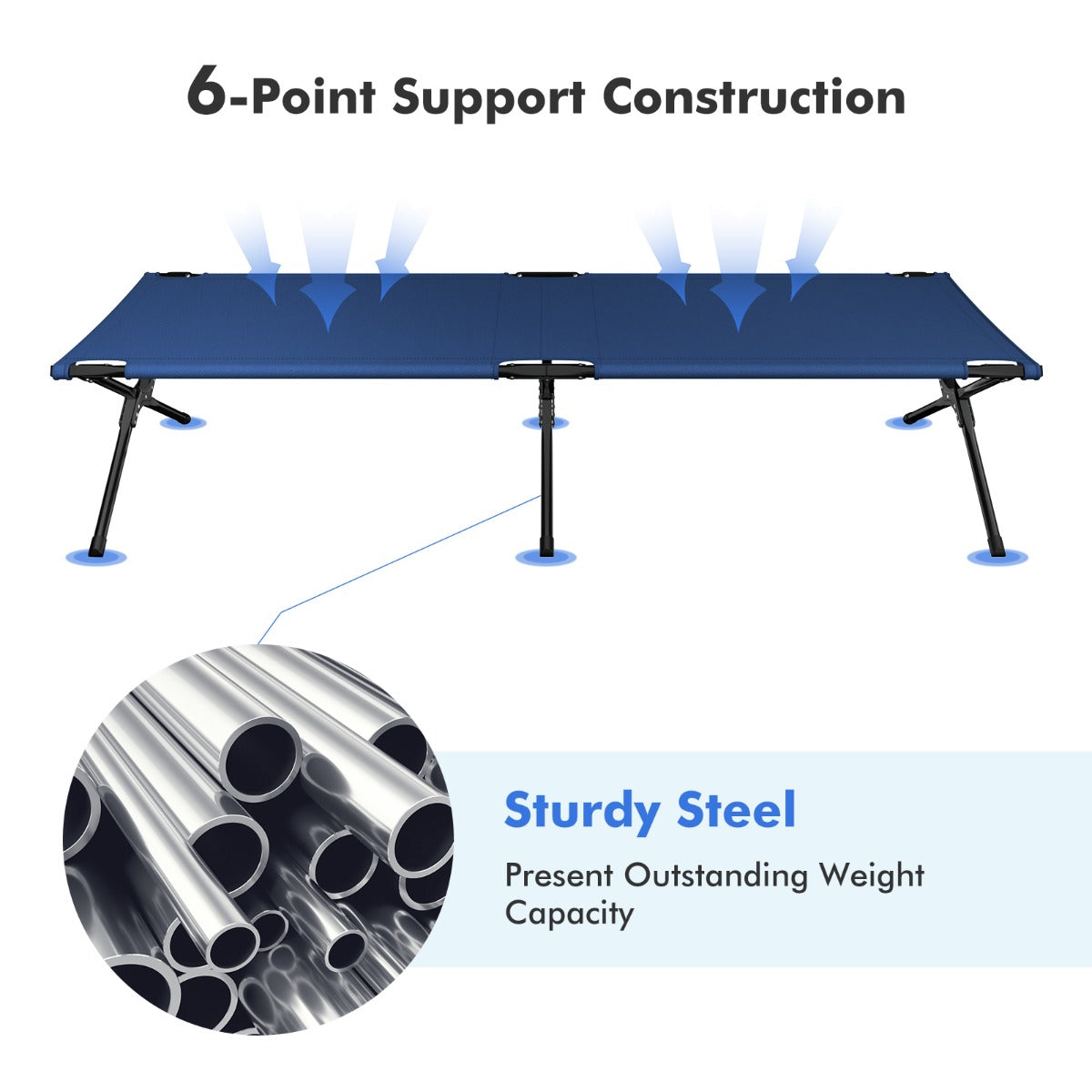 This deluxe portable cot is expressly designed for camping, since it is both lightweight and heavy-duty. Crafted with a collapsible steel pipe frame and durable and comfortable oxford fabric, this camping cot has enough room for you to spread out and snooze, perfect for youth or adult sleepers.