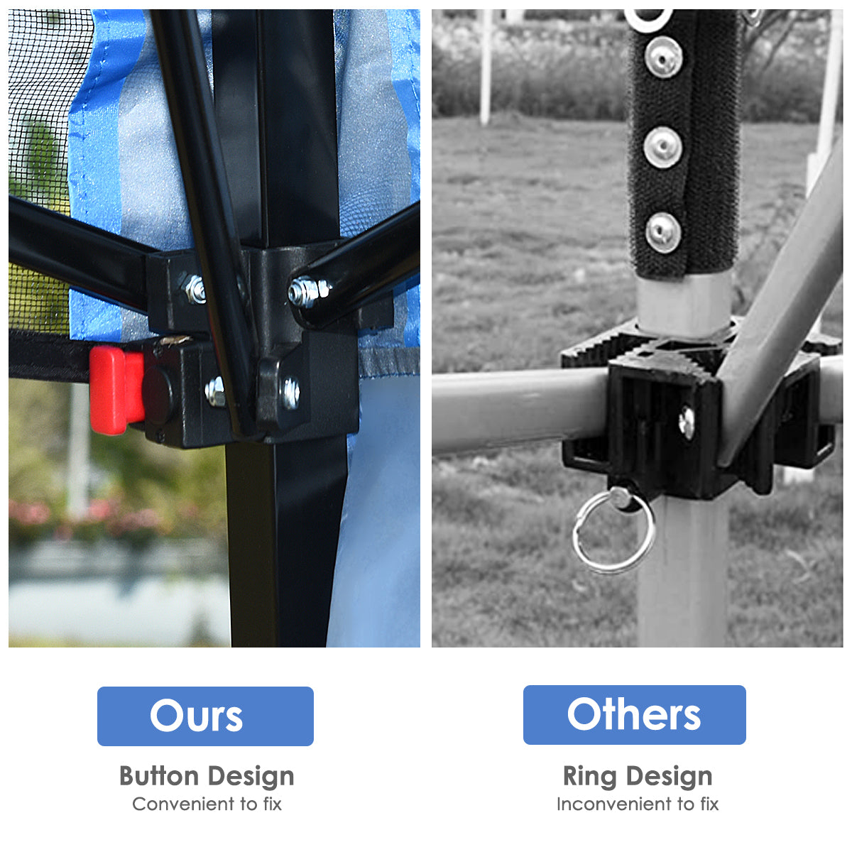 Premium Material of Top: The material of top and sidewall of the canopy is thickened fabric with special coating, which is sun-protective and water-resistant. And the top is also flame retarded which gets the certification of CPAI-84.