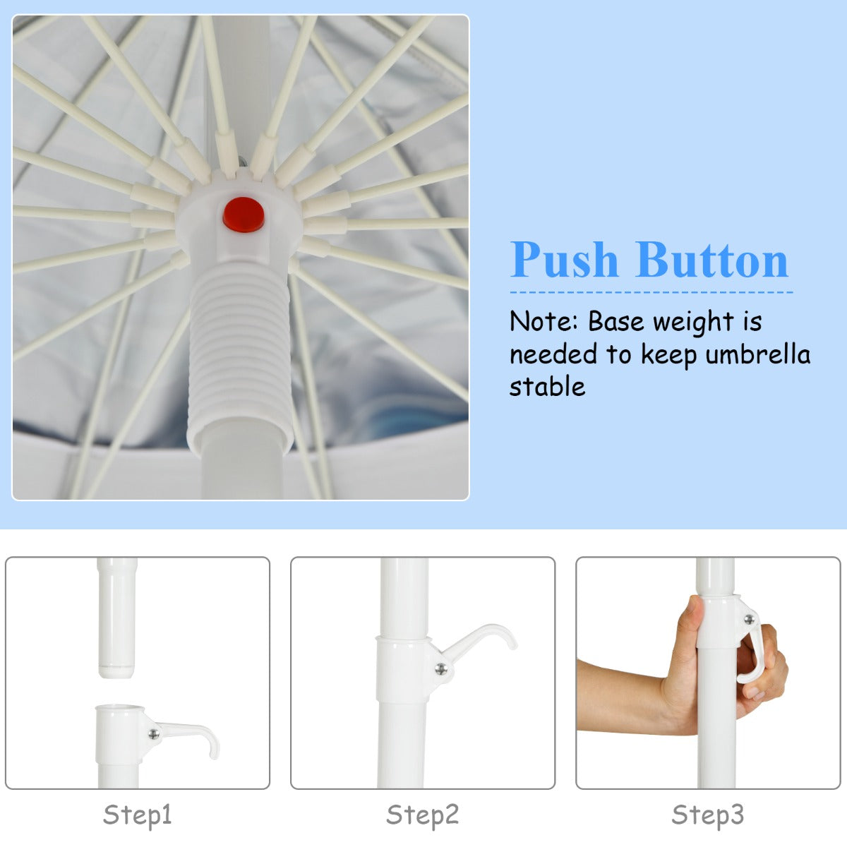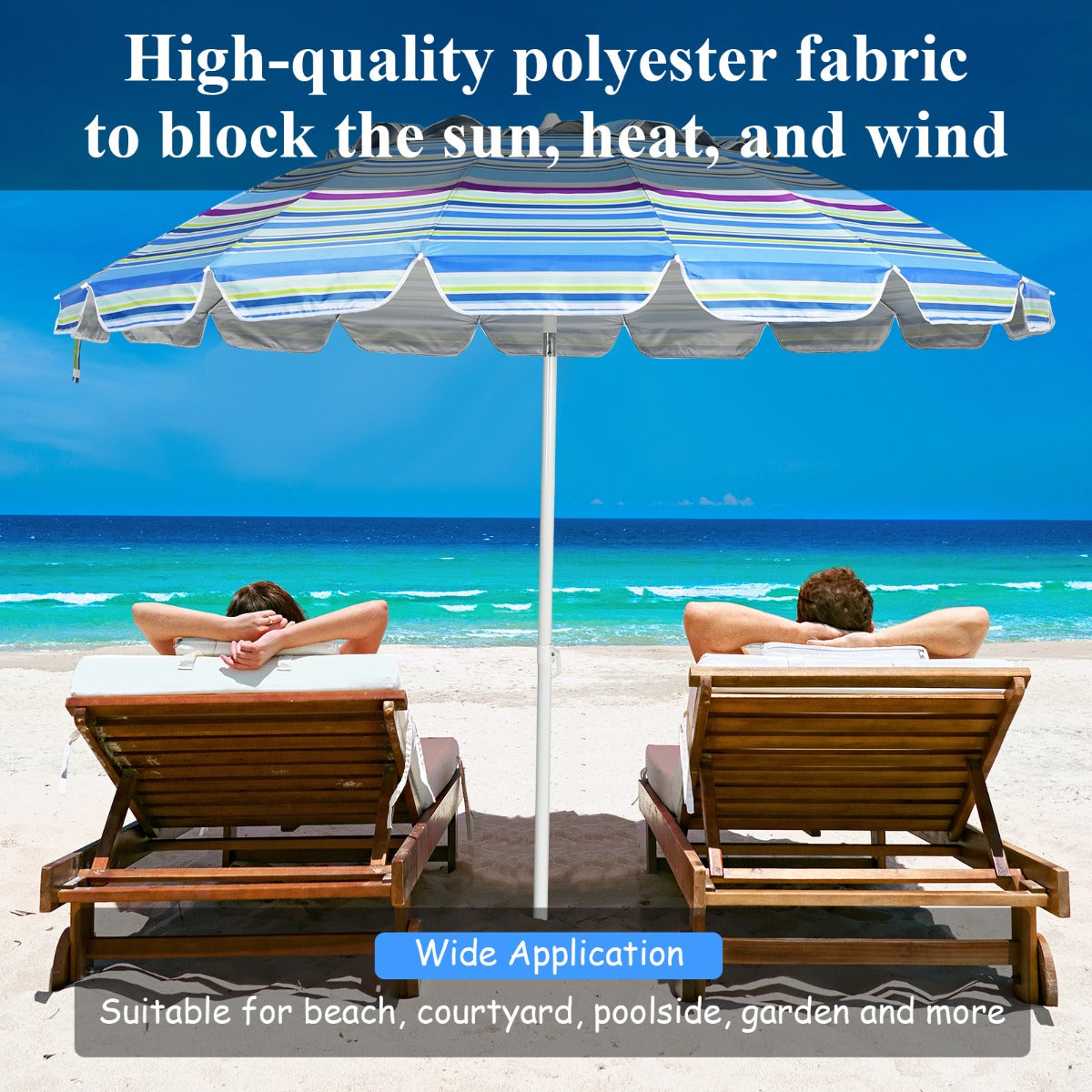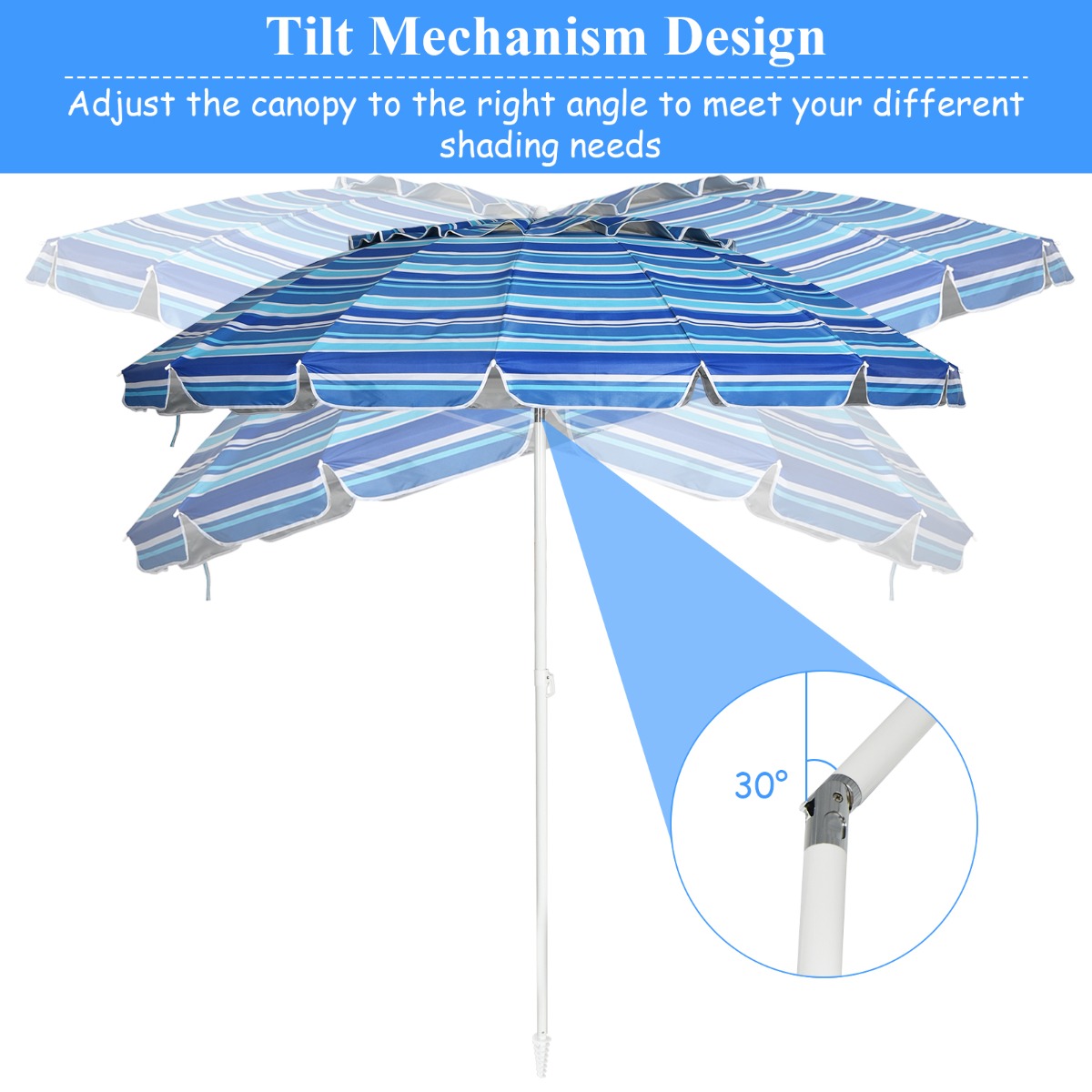 Description: Sit and enjoy the beach or nature with this beach umbrella. With an innovative tilt design, the beach umbrella protects you from the elements but won't restrict your view. The umbrella is also sun-safe, with a UPF 50+ coating...View More