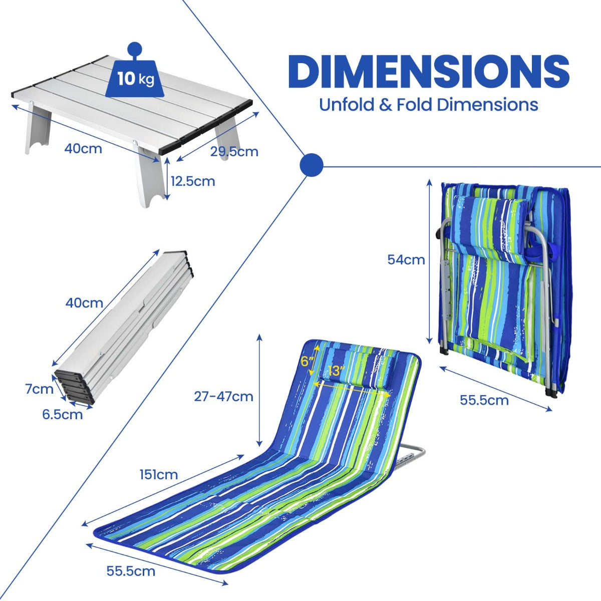 Fully Enjoy Sunbathing with Our Beach Mats & Table! Our beach mat set includes 2 reclining loungers with frames and a folding table, which is suitable for your outdoor activities like chatting with friends, bathing in the sunshine, reading books,...View More