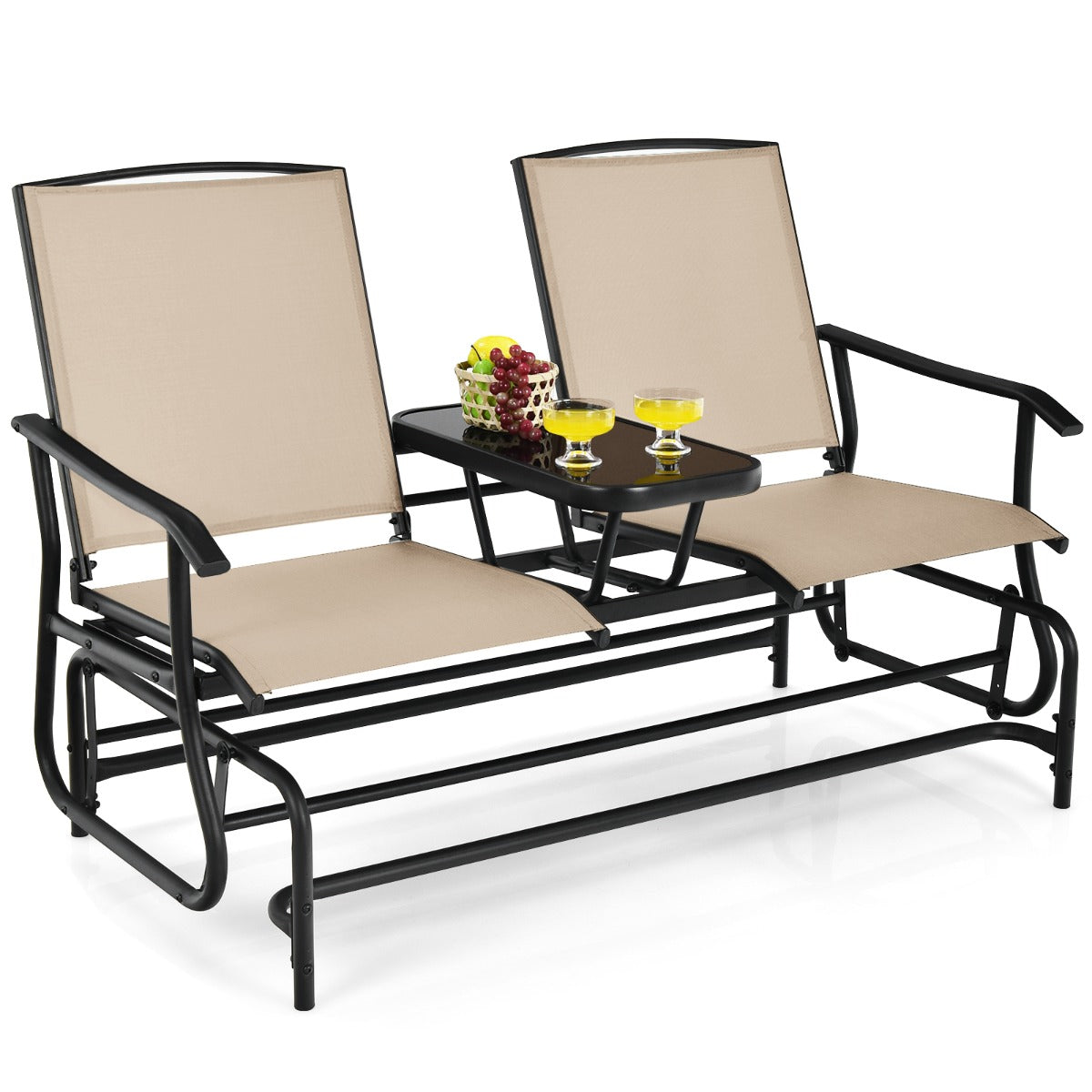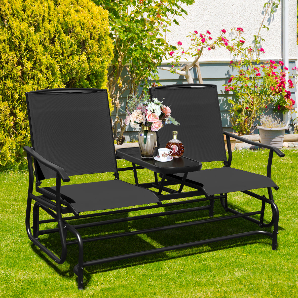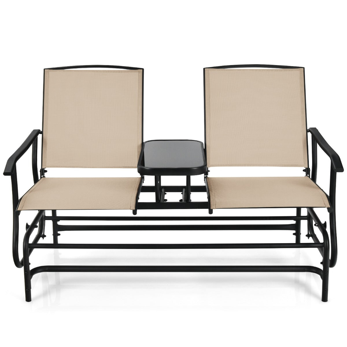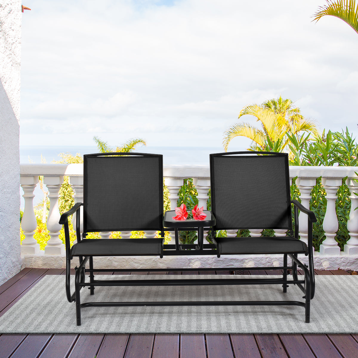 Are you finding a rocking chair? The 2-person rocking chair will give you the most comfortable rocking experience and add colour to your outdoor living space. The rocking chair adopts a solid steel frame, which is durable with a load capacity of 240kg. And the tabletop in the middle of the seat is made of tempered glass, which is beautiful and can be used to put food or decorations on. Plus, the armrests on each side of the chair are ergonomically designed to relax your arms and hands. You can sit on the rocking chair with your family or friends and read or take a nap with a gentle rocking motion. What's more, the rocking chair comes with instructions so that you can assemble it easily and quickly
