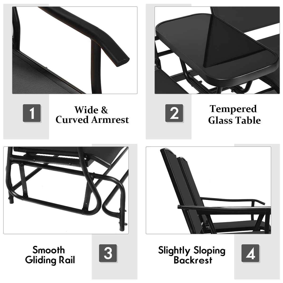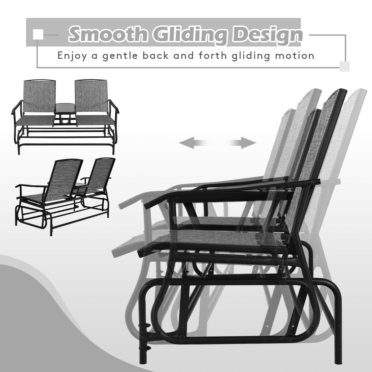 Comfortable & Safe Design: The two-person rocking chair's gliding system is very quiet and smooth, which can bring you the most comfortable rocking experience. Plus, the rocking chair is also equipped with protective foot pads to prevent slipping and protect the ground.
