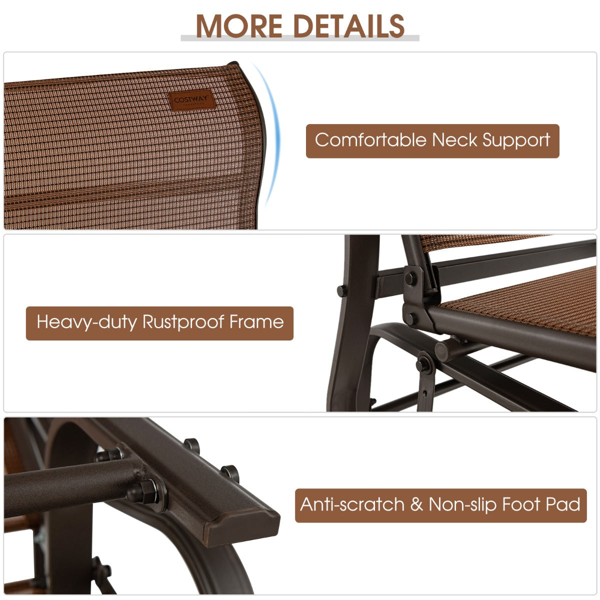 Sturdy & Durable Material: Constructed of a heavy-duty steel frame, this 2-person glider bench features a large weight capacity to hold up to 660 lbs. And the powder-coated surface is rustproof for longer outdoor service time. In addition, the non-slip foot pads add extra stability without scratching the floors.