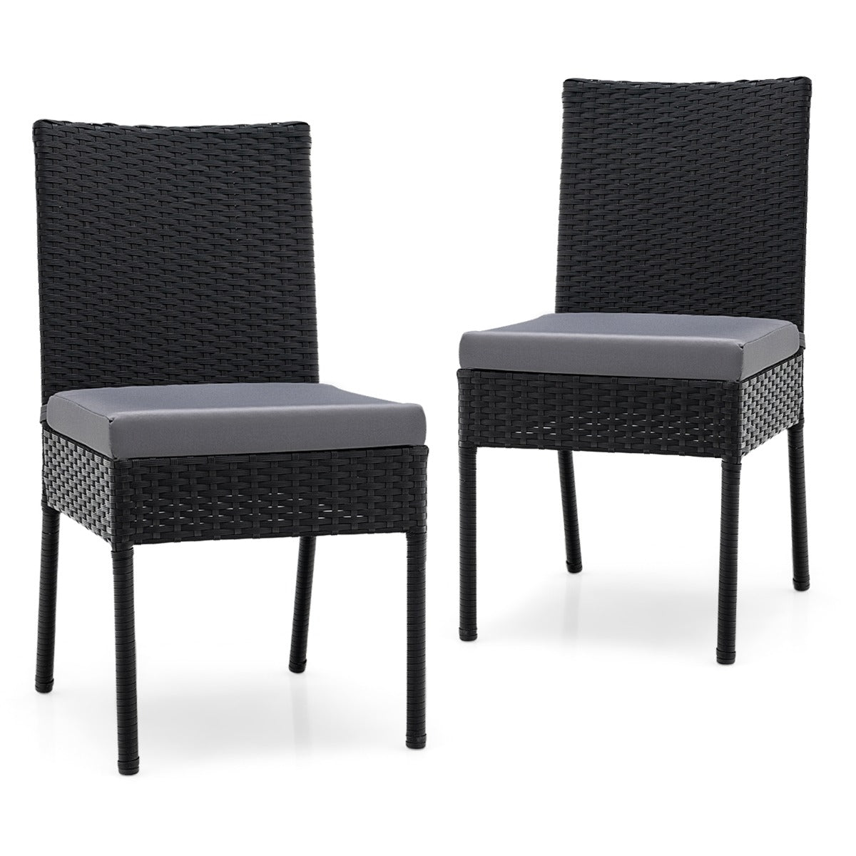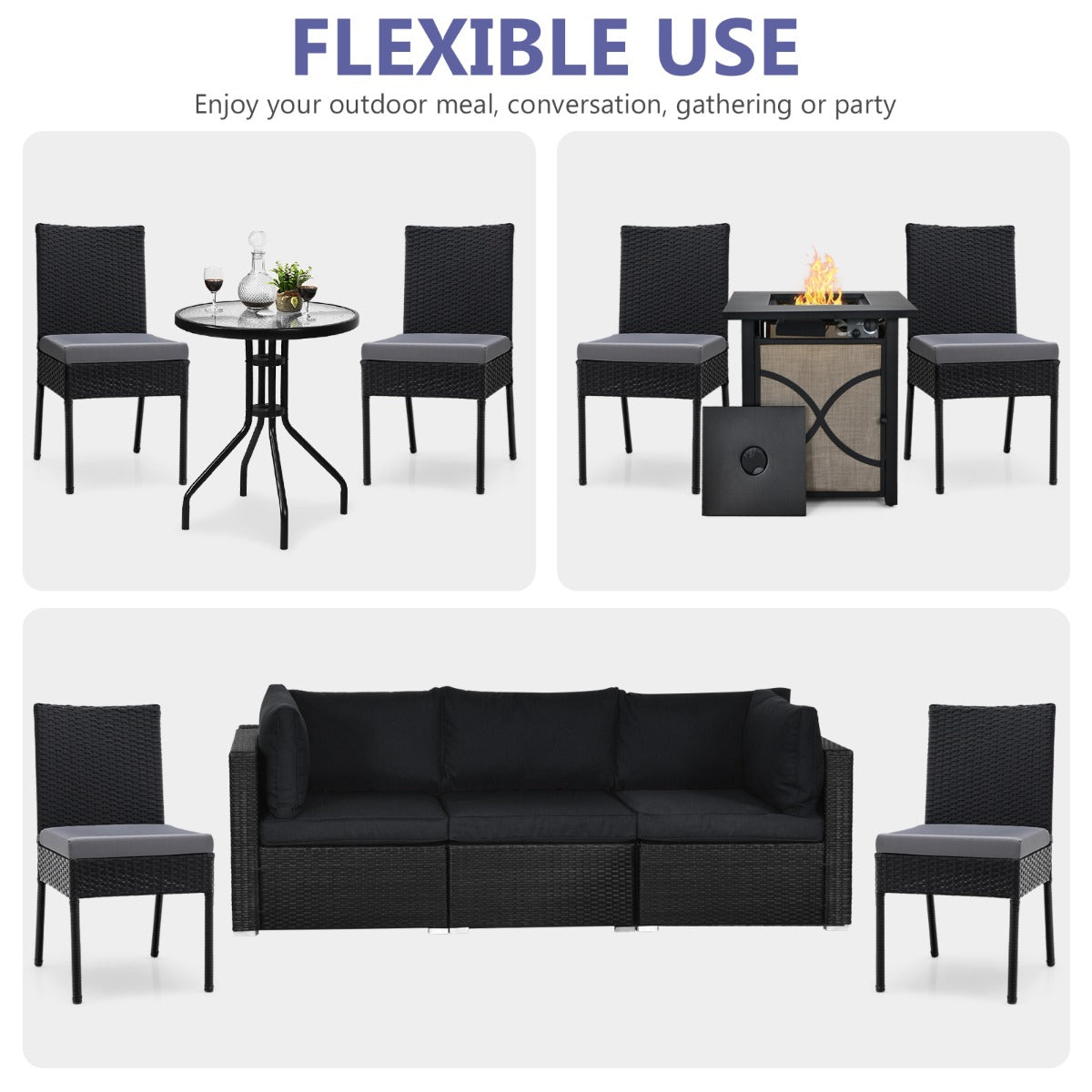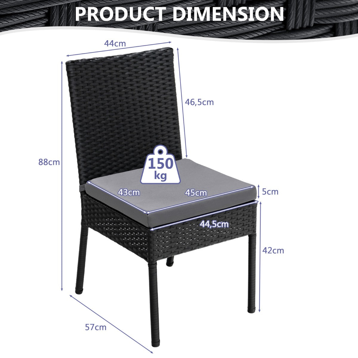 Selected Black PE Rattan: The high-quality PE wicker, which is weather-resistant, fade-resistant and sun-protective makes these patio dining chairs have a better performance in the outdoor environment. Besides, the PE rattan also endows the modern feeling for these outdoor chairs.