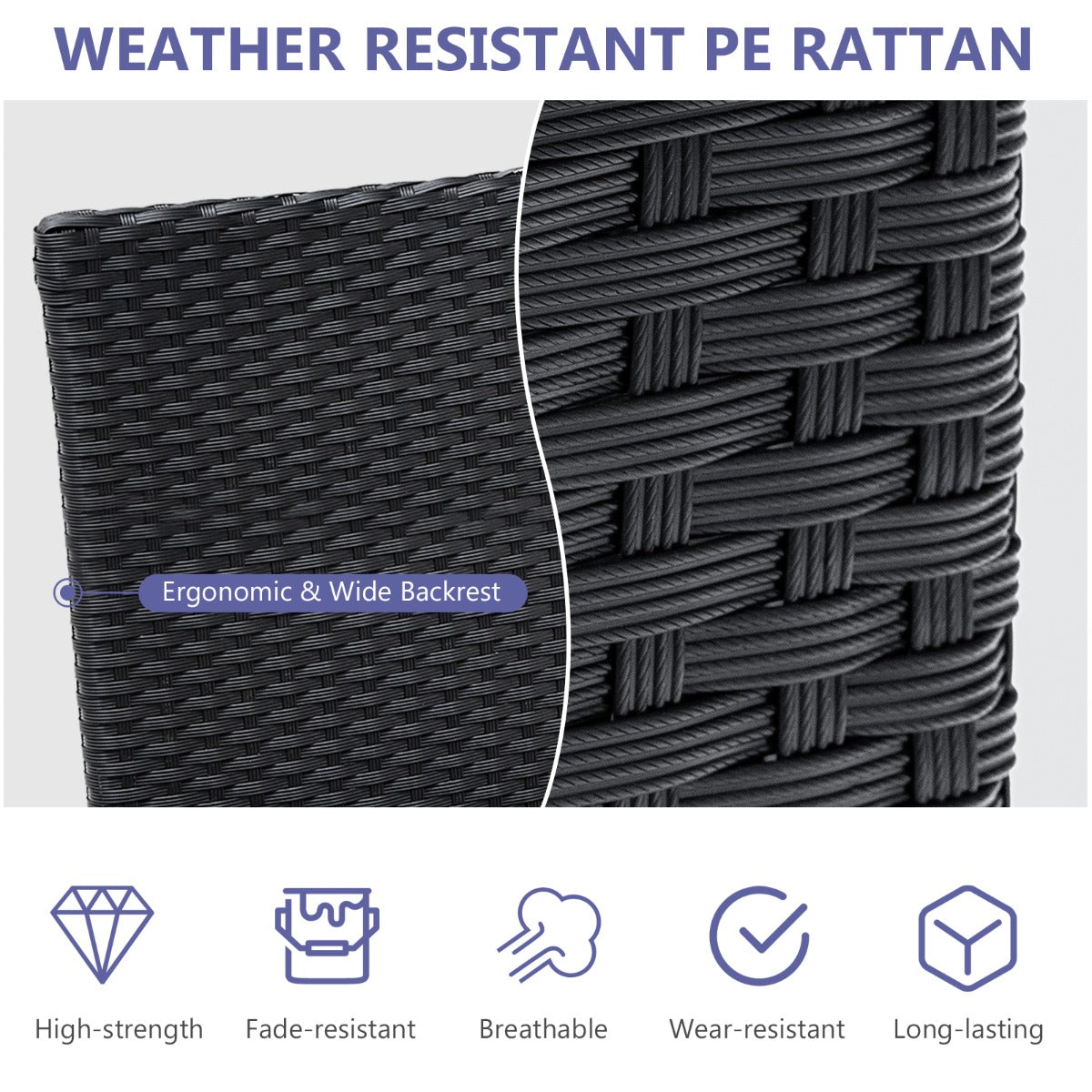 Sturdy Construction: Supported by a heavy-duty steel frame with a rustproof surface, these outdoor PE wicker chairs come with a strong loading capacity to support you safely and steadily while ensuring long service time outdoors. Besides, the anti-slip foot pads and reinforced structure add extra stability.