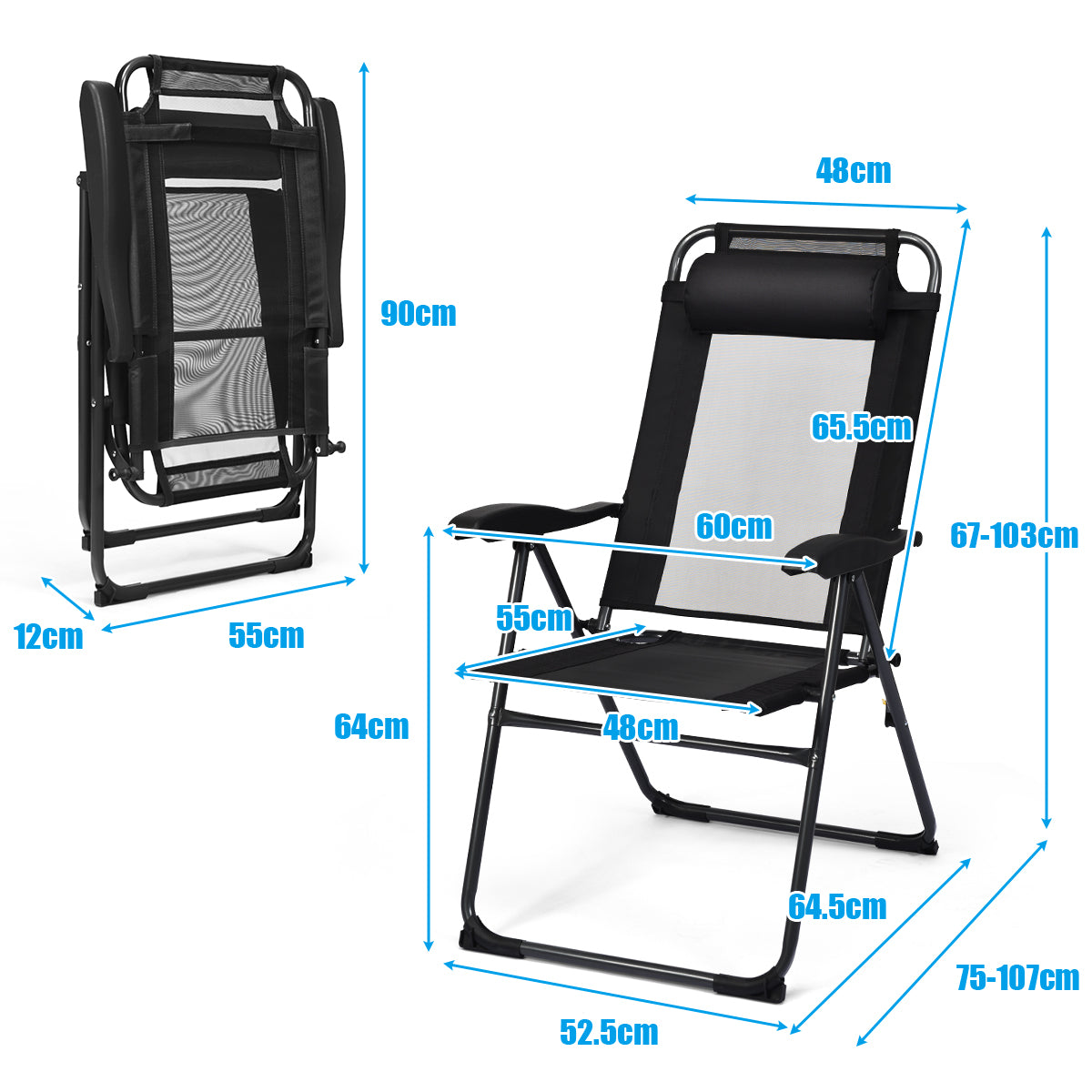 6 Adjustable Backrest Positions: This foldable sling chair is ergonomically designed with the adjustable backrest in seven tilting positions for reading mode, relaxing mode and sleeping mode. The tilting mechanism is controlled by the armrest, easy to adjust and firmly fixed to the optimal positions.
