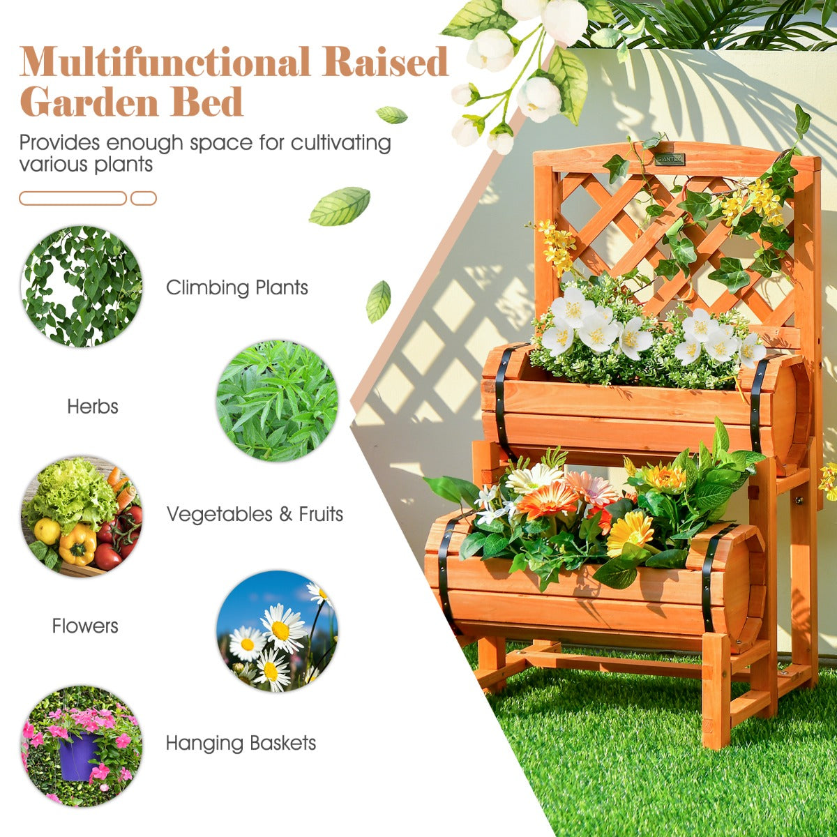 Double Tire Flower Box: Consists of huge planter area and a lattice trellis, this raised garden bed offers planter diverse planting modes for both common plant and climbing plants such as flower, fruit, vegetable. You can also hanging plant baskets or other decorations to add variety to the planter.