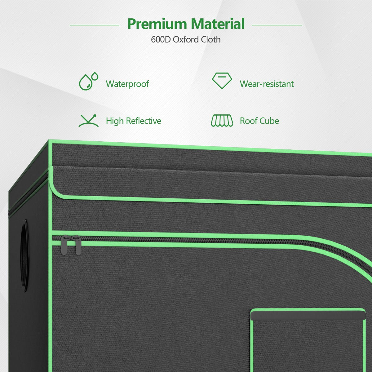 High Reflective Growing Environment: With 98% highly reflective Mylar, our grow tent provide an ideal environment for plants to grow by locking all light in. And the heavy duty zipper has used double stitching technology, so it can create a completely enclosed environment to prevent light-leaking.