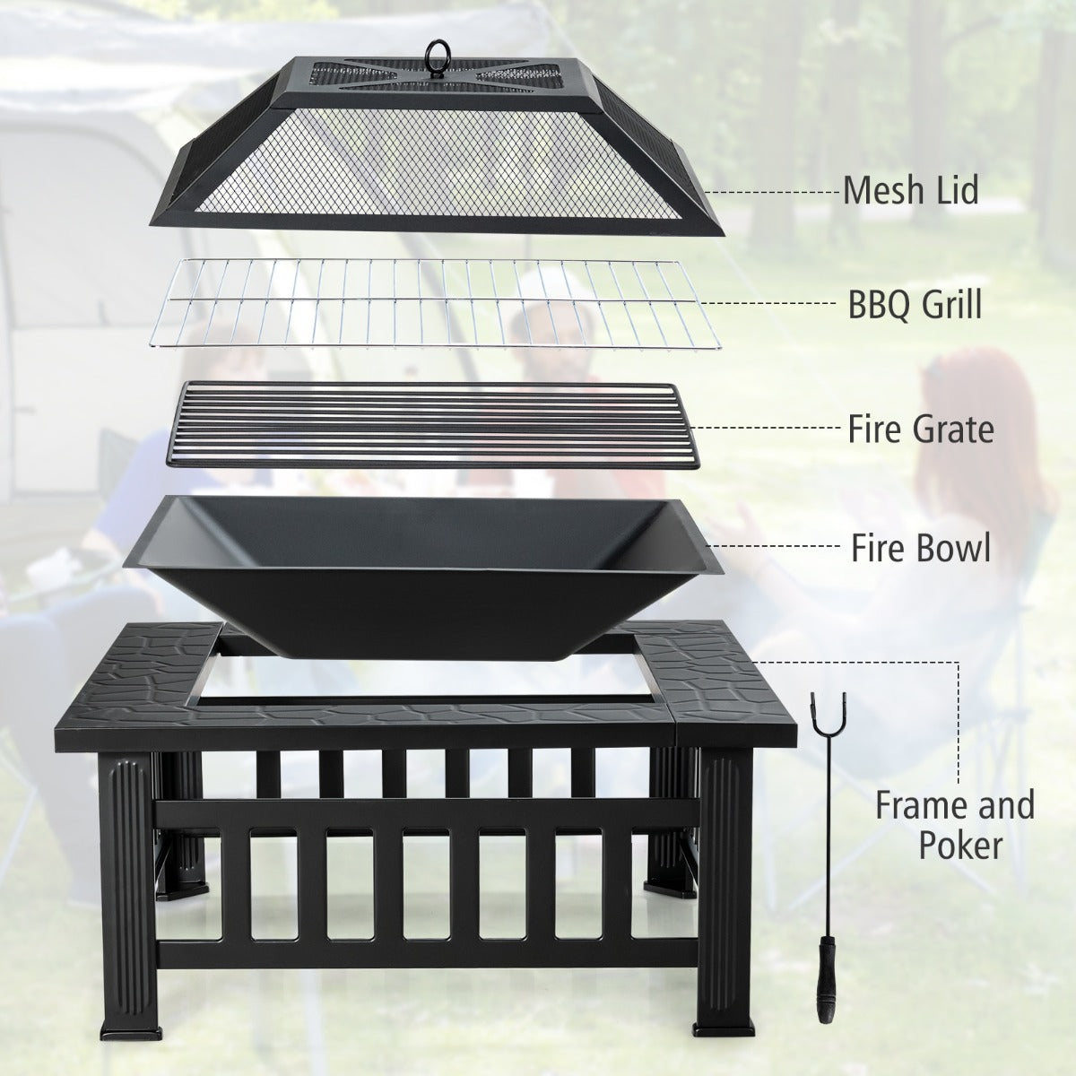 In addition, this 3-in-1 fire bowl can be used as a fire pit table, BBQ grill and ice bucket to meet your different needs. Made of high-quality steel, the heavy-duty fire pit with heat-resistant black coating is stable and safe to use. The package includes a mesh cover and a poker to protect you from being hurt by flying sparks or debris. And the BBQ grillallows you to enjoy parties, camping and plenty of outdoor activities.