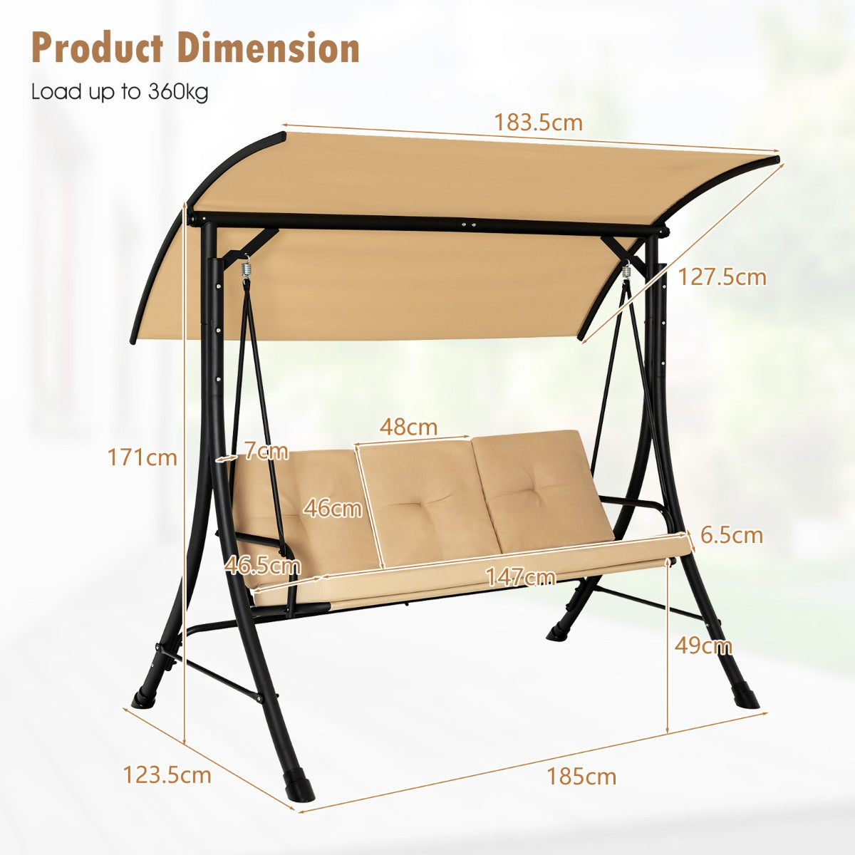 Aussies Market 3-Person Outdoor Porch Swing with Solid Steel Structure for Garden