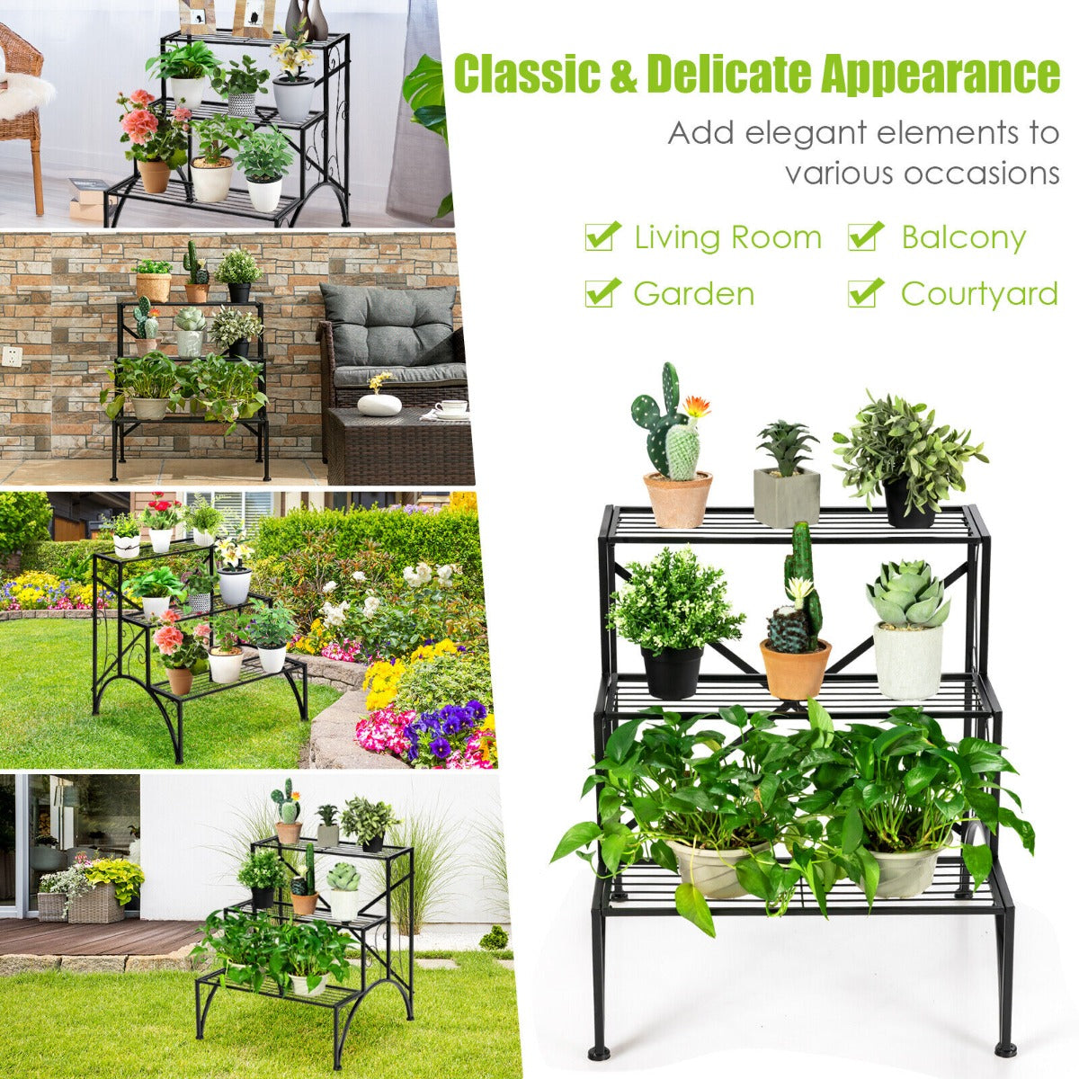 3 flat metal tiers with vertical design allow you to display a variety of plants and provide sufficient sunlight to the plants.