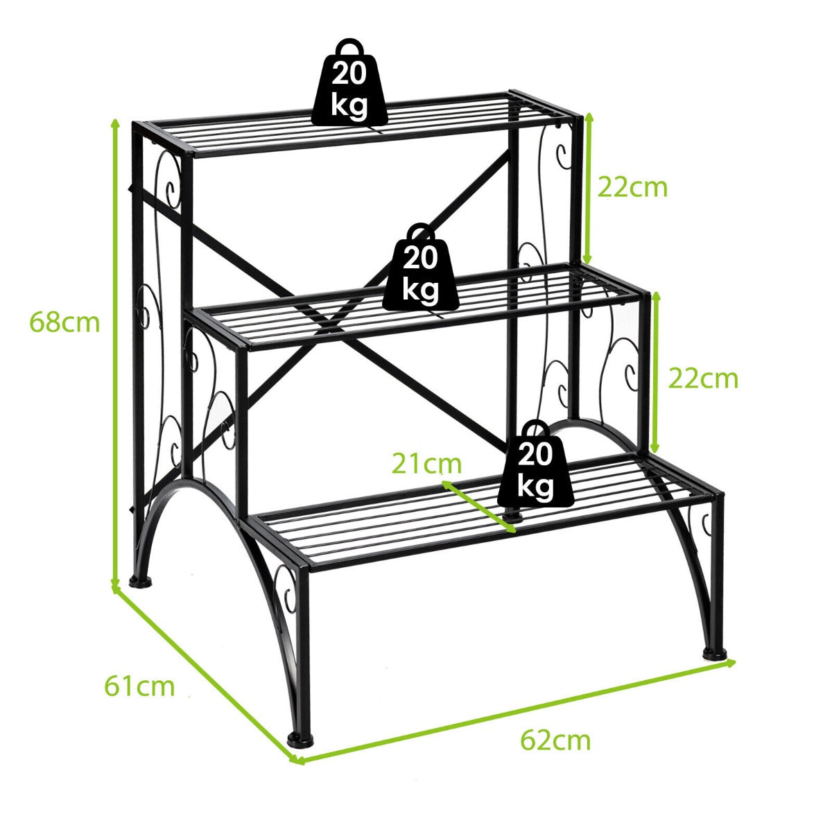 Durable & Sturdy Structure: The durable metal construction with high quality black powder coated finish makes it stable and weather-resistant for indoor or outdoor storage. Additionally, the non-slip footpads give extra balanced support for all your plants and protect the floor from scratches.