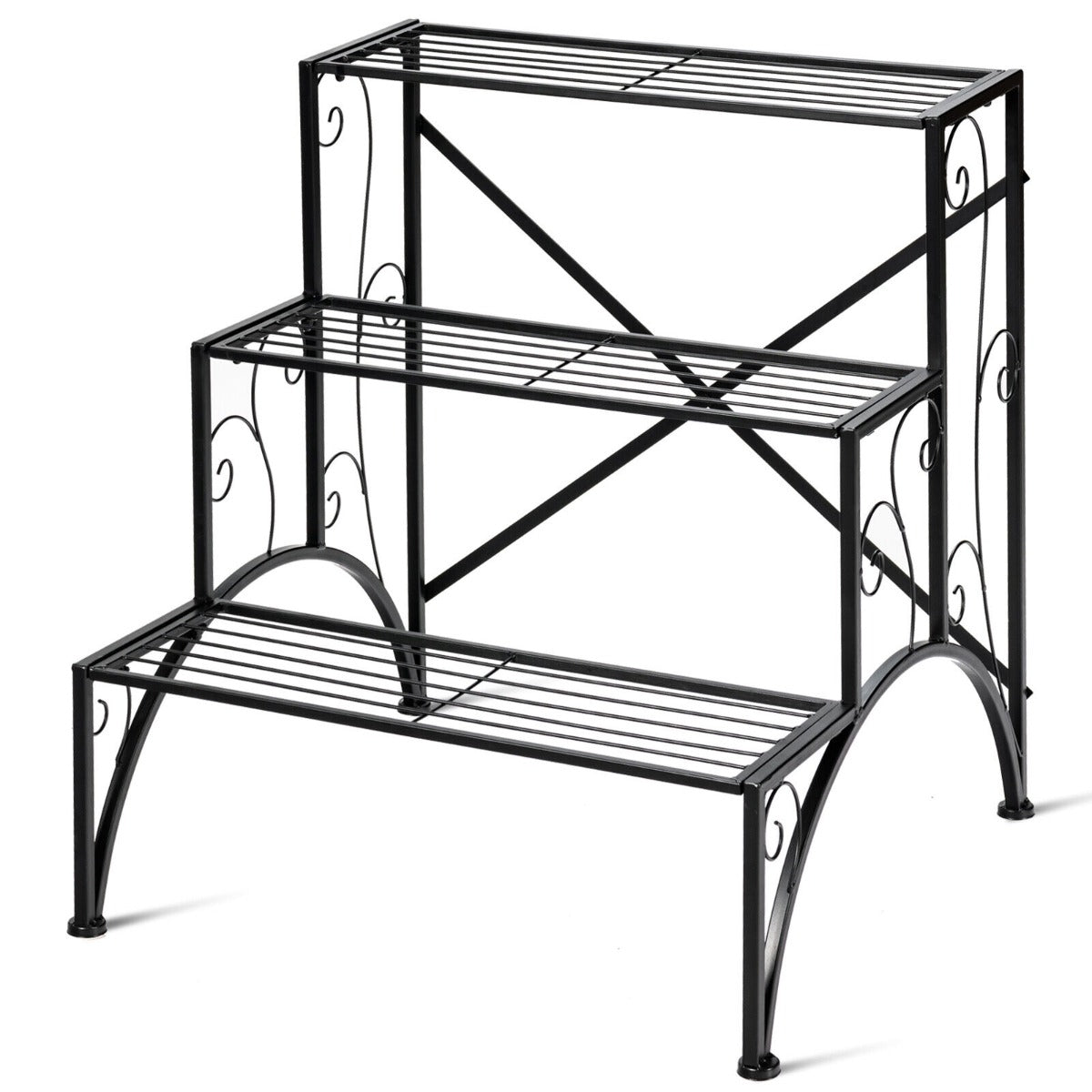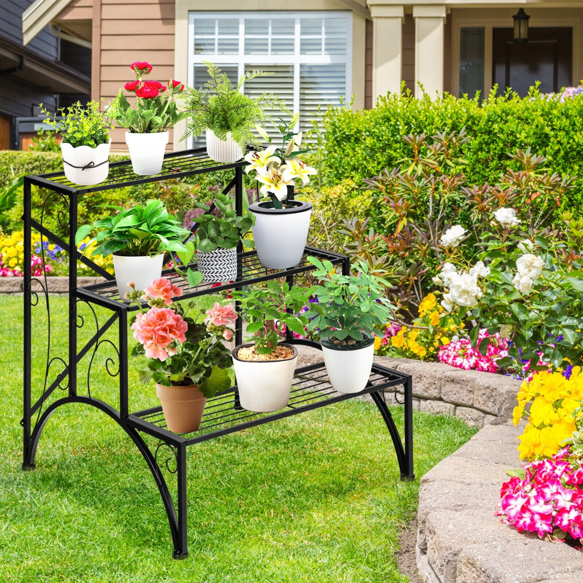 Our 3-tier flower stand adds functional elegance and natural beauty to your garden, courtyard and living room. Made of selected metal with delicate powder finish, this plant stand is sturdy and durable for indoor and outdoor use. 3 flat metal tiers with vertical design allow you to display a variety of plants and provide sufficient sunlight to the plants. Thanks to its suitable gaps, you don't have to worry about plants falling accidentally. And the lightweight and portable frame let you move to any room or outdoor easily. There are complete accessories and clear manual in the package, so this plant rack won't take you too much time to install it. With elegant and modern look, this charming and space-saving plant display rack blends well with your home decor and creates a sophisticated ambience for your space. Arrange your messy plants with this delicate 3-layer flower stand!