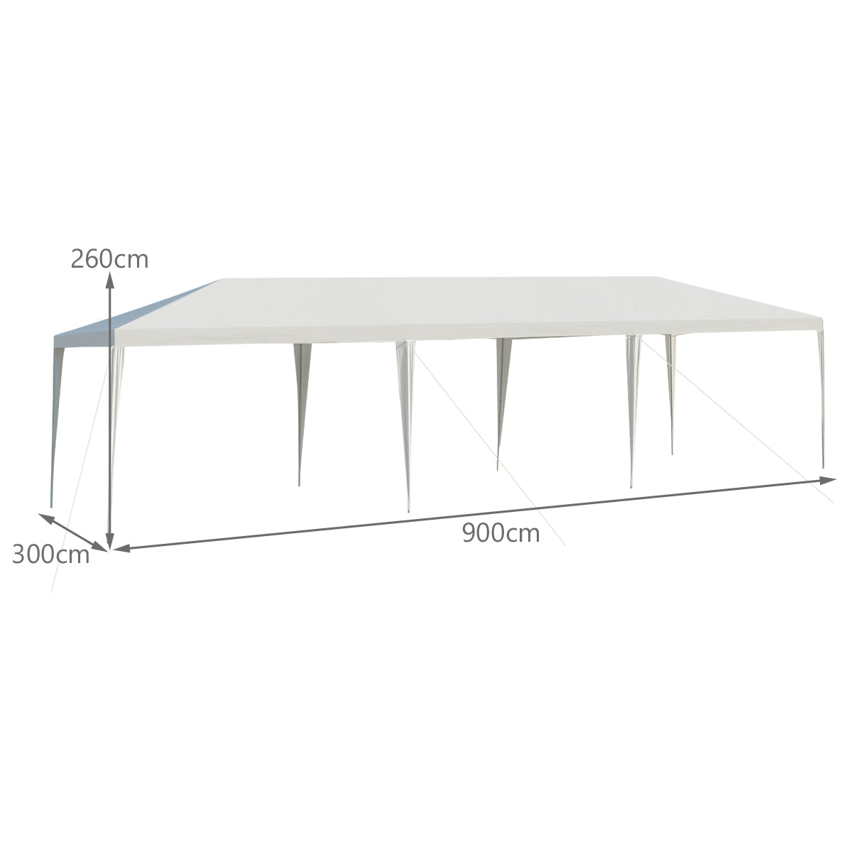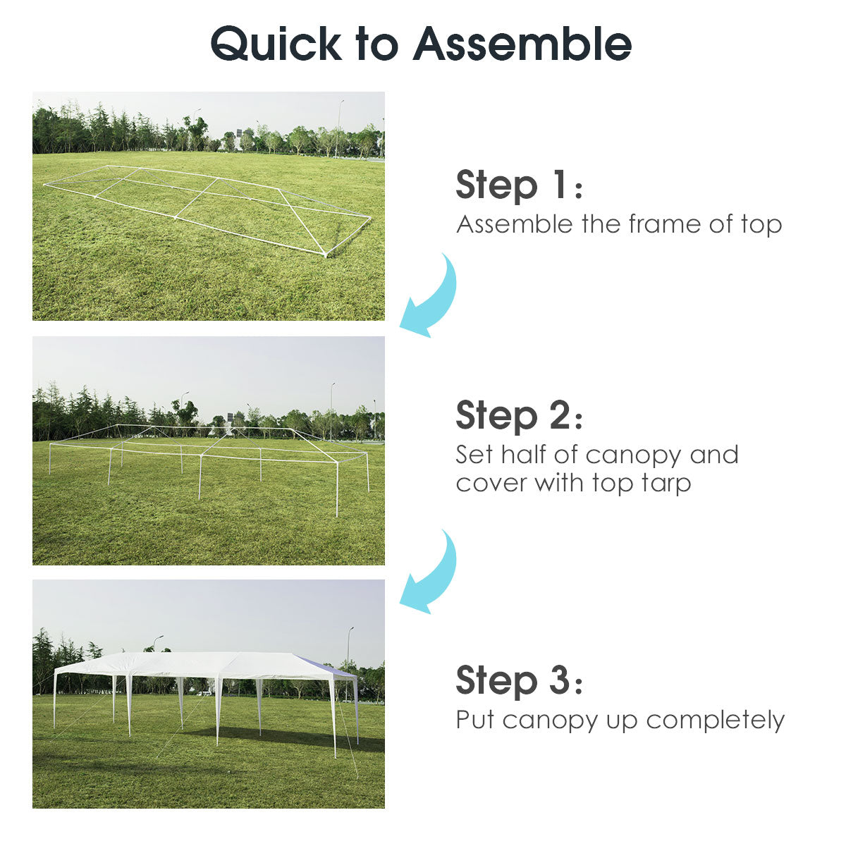 Large Inner Space: Our 3m x 9m outdoor tent has spacious inner space for you and your friends to have activities. It can hold many people for dining, party or wedding together. Regardless of rain or sunshine, it will probably not affect outdoor activities if you have such a canopy. What's more, the canopy can also be a temporary garage for your car, tools, and patio furniture.