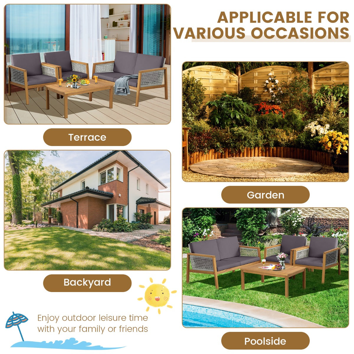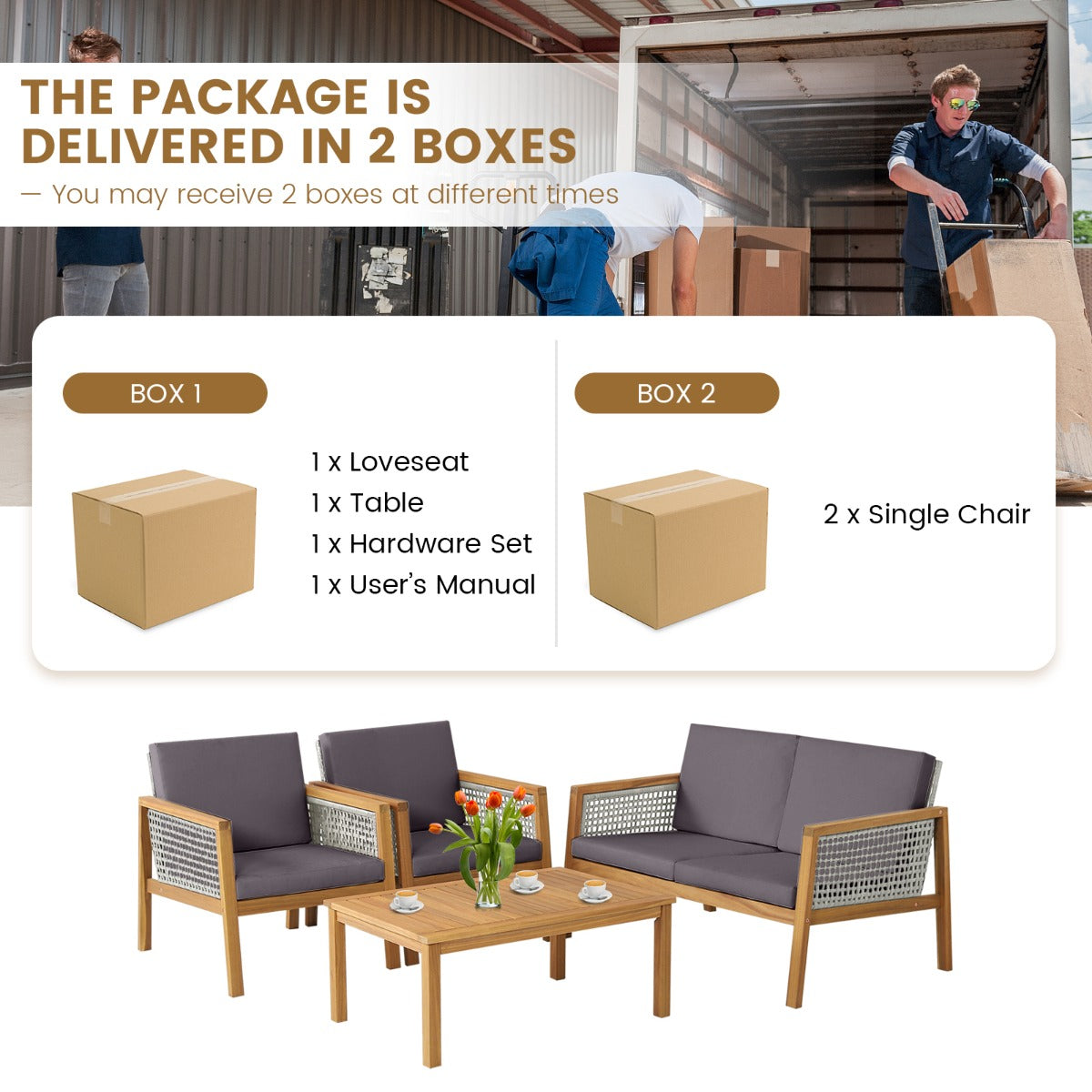 Aussies Market 4-Piece Patio Acacia Wood Furniture Set with Cushions for outdoors-Gray