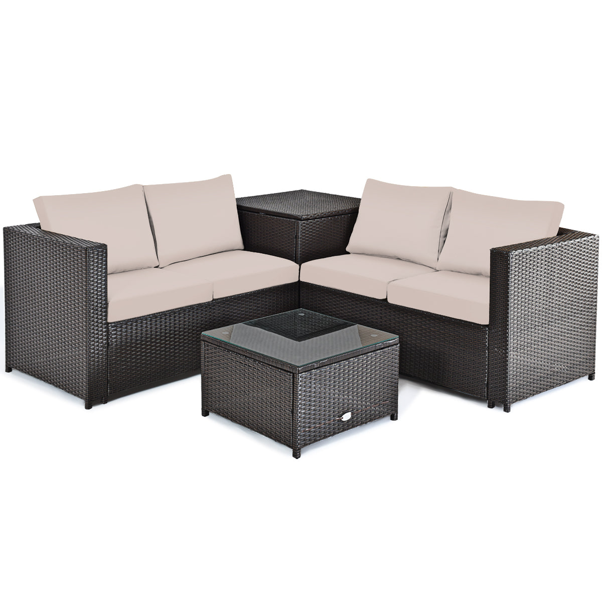 Complete Sofa Set & Upgraded Comfort: Featuring 2 loveseats, 1 coffee table and 1 corner table, our rattan sofa set offers you a wonderful outdoor place to enjoy your leisure time. And this sofa set comes with soft sponge padded cushions, ergonomic backrest and armrests, providing you with optimal comfort and strong support.