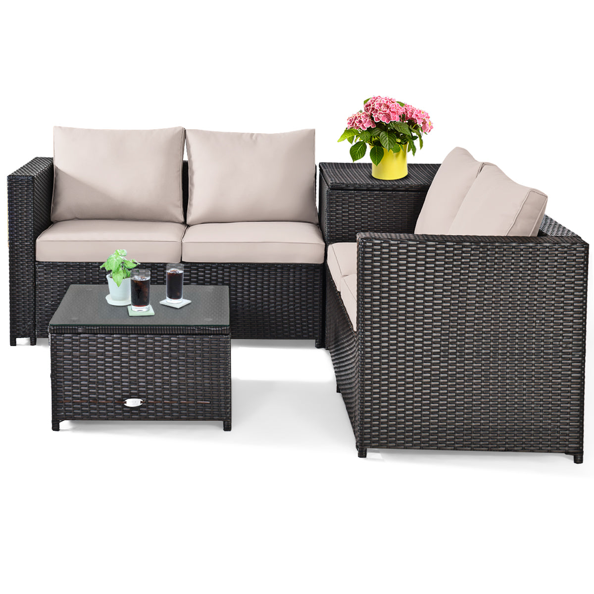 Don't you want to create a private corner indoors or outdoors to spend the leisure time? Our 4-piece rattan sofa set will bring you the most comfortable casual experience!